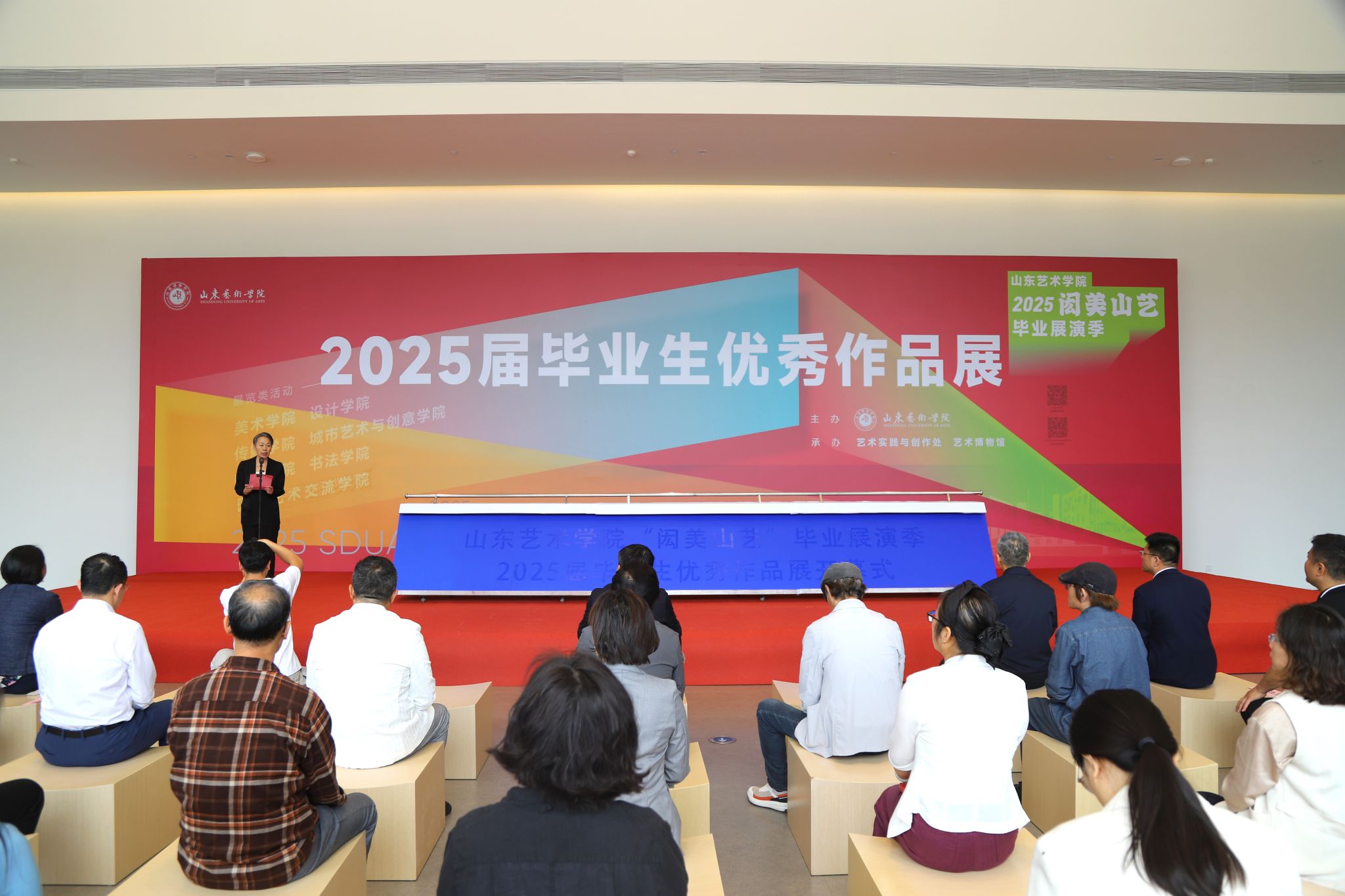 荆雷对2025届毕业生优秀作品展的顺利开幕表示祝贺。她表示,学校始终坚持社会主义办学方向,全面贯彻党的教育方针、文艺方针,秉承“闳约深美”的校训,发扬“重品德、厚基础,重实践、强学术”的优良办学传统,优秀作品展是本科生四年、研究生三年学习成果的全面总结,也是学校教育教学、艺术实践与创作成果的集中呈现。此次展览,共展出我校美术学院、设计学院、传媒学院、城市艺术与创意学院、电影学院、书法学院、国际艺术交流学院美术设计类专业毕业生优秀作品共429件。通过此次活动,全面展示学校人才培养水平,集中向社会宣传、推介学校毕业生,为毕业生就业创业搭平台、找出口。同时,向社会集中推出学校精品力作,丰富大众文化生活,提升大众审美品位,为文化强省建设贡献山艺力量。
