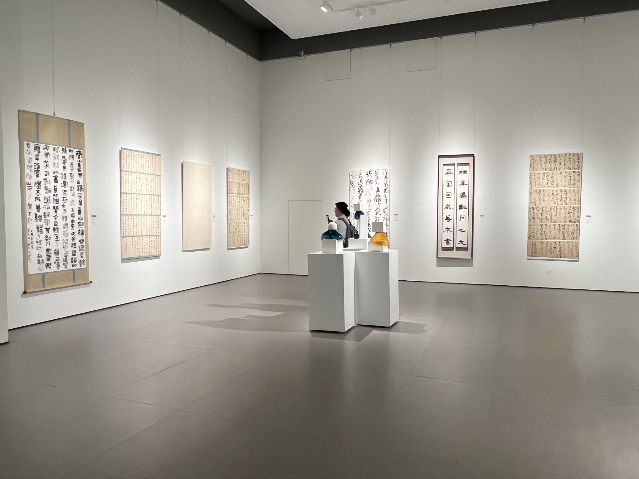 开幕式上,到场领导上台一起推动启幕仪,金沙缓缓流下,宛如一幅徐徐展开的画卷,为展览正式拉开帷幕。美术学院2025届中国画专业研究生白凯杨代表参展毕业生发言。