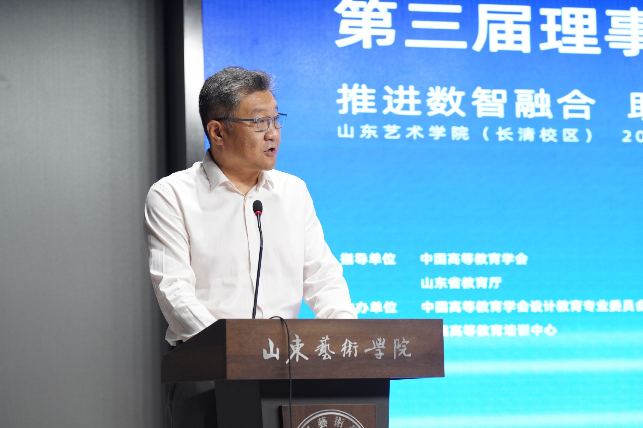 6月26至28日,中国高等教育学会设计教育专业委员会第三届理事会第二次会议暨学术年会在我校长清校区召开,年会由中国高等教育学会设计教育专业委员会、中国高等教育培训中心主办,山东艺术学院承办,主题为“推进数智融合 助力教育强国”,山东省文联主席、山东省美术家协会主席、山东艺术学院院长徐青峰出席会议并致辞。中国高等教育学会设计教育专业委员会(以下简称专委会)秘书长、清华美院副院长杨冬江主持专委会理事会和开幕式。专委会理事长、清华美院原副院长何洁传达了中国高等教育学会第八届理事会第十次会议精神、宣读了设计教育专委会年度工作报告。专委会常务理事、副秘书长刘德坤解读了2025年度科研工作计划及理事会员发展工作情况。