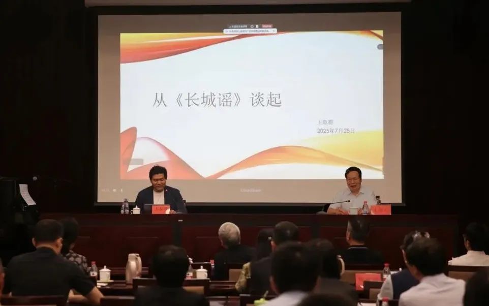 王歌群以盟员刘雪庵作曲的《长城谣》为切入点,讲述了这首经典抗战歌曲的创作背景与历史意义,并现场深情演唱了这一不朽之作。他讲到,《长城谣》之所以能跨越时空、历久弥新,在于它深深扎根人民,为人民而创作。报告还介绍了丁善德、刘德海、盛中国、鲍蕙荞、李谷一等优秀盟员艺术家和他们的代表作,这些作品抒发人民心声,讴歌时代精神,生动诠释了民盟先贤“奔走国是、关注民生”的家国情怀。他特别提到,在中国人民抗日战争暨世界反法西斯战争胜利80周年之际,山艺正充分发挥专业所长,潜心打造更多承载历史记忆、弘扬民族精神的文艺精品,以艺术力量传承红色基因、凝聚时代共识。