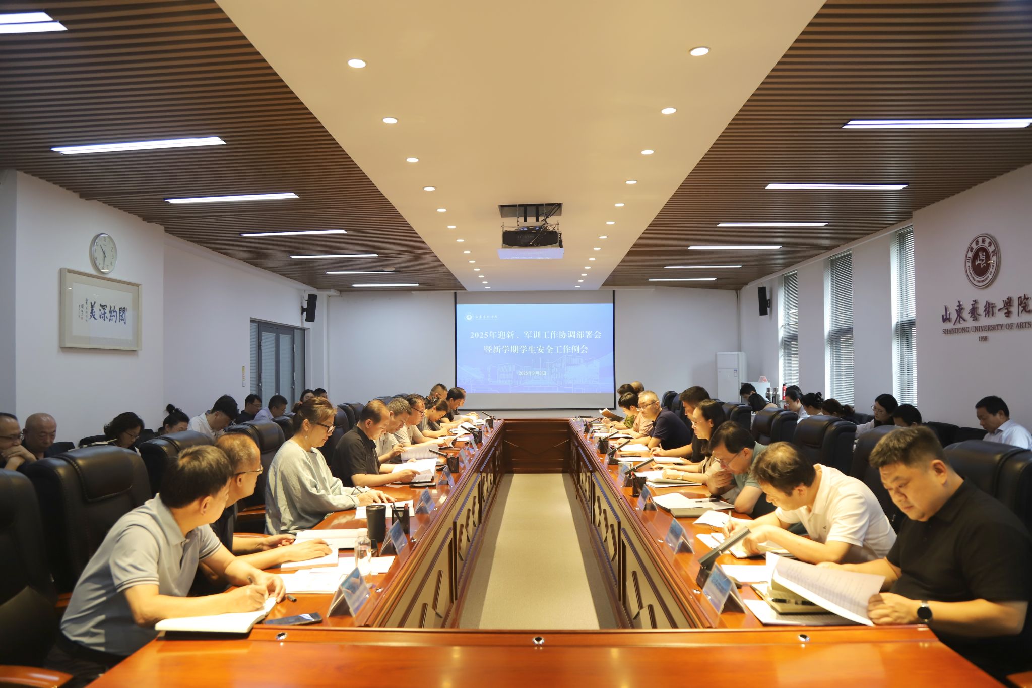 9月8日上午,学校在长清校区第一会议室组织召开2025年迎新、军训工作协调部署会暨新学期学生安全工作例会。党委委员、副院长苏茂兴主持会议并讲话。相关职能部门负责人、各二级学院党组织书记、副书记,学生工作部(处)、团委全体工作人员参会。