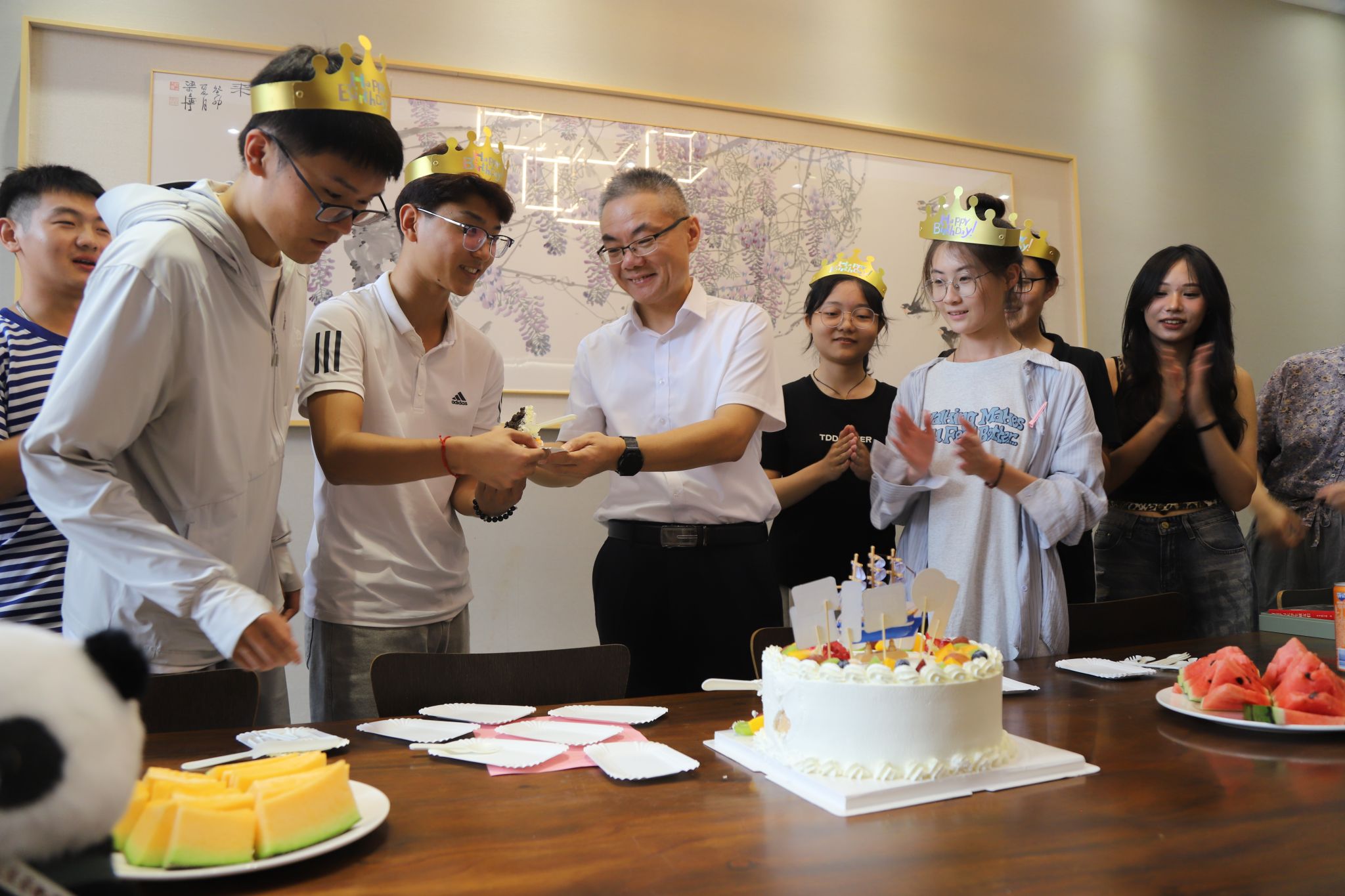 迎新各项服务细致周到,温暖人心。志愿者们穿梭于校门口、宿舍与接待点,用行动诠释了山艺人的担当。校园内专门开放美术馆及多处荫凉篷区域作为家长休息区,配备座椅、长垫,提供免费绿豆汤、矿泉水等清凉饮品,缓解奔波疲惫。学生资助管理中心开通“绿色通道”,为家庭经济困难学生发放了26份爱心礼盒及300余份绿色礼袋,将温暖与关怀落到实处。此外,学校还策划了“艺启开学,温暖同庆”小型座谈会,邀请恰逢生日、少数民族和来自不同地域的新生代表十余人,校领导到场与同学们交流,送上寓意深远的书籍和文具礼盒,共唱生日歌、分享甜蜜蛋糕,希望通过这种特别的欢迎仪式,与同学们共度温暖的“第一课”。