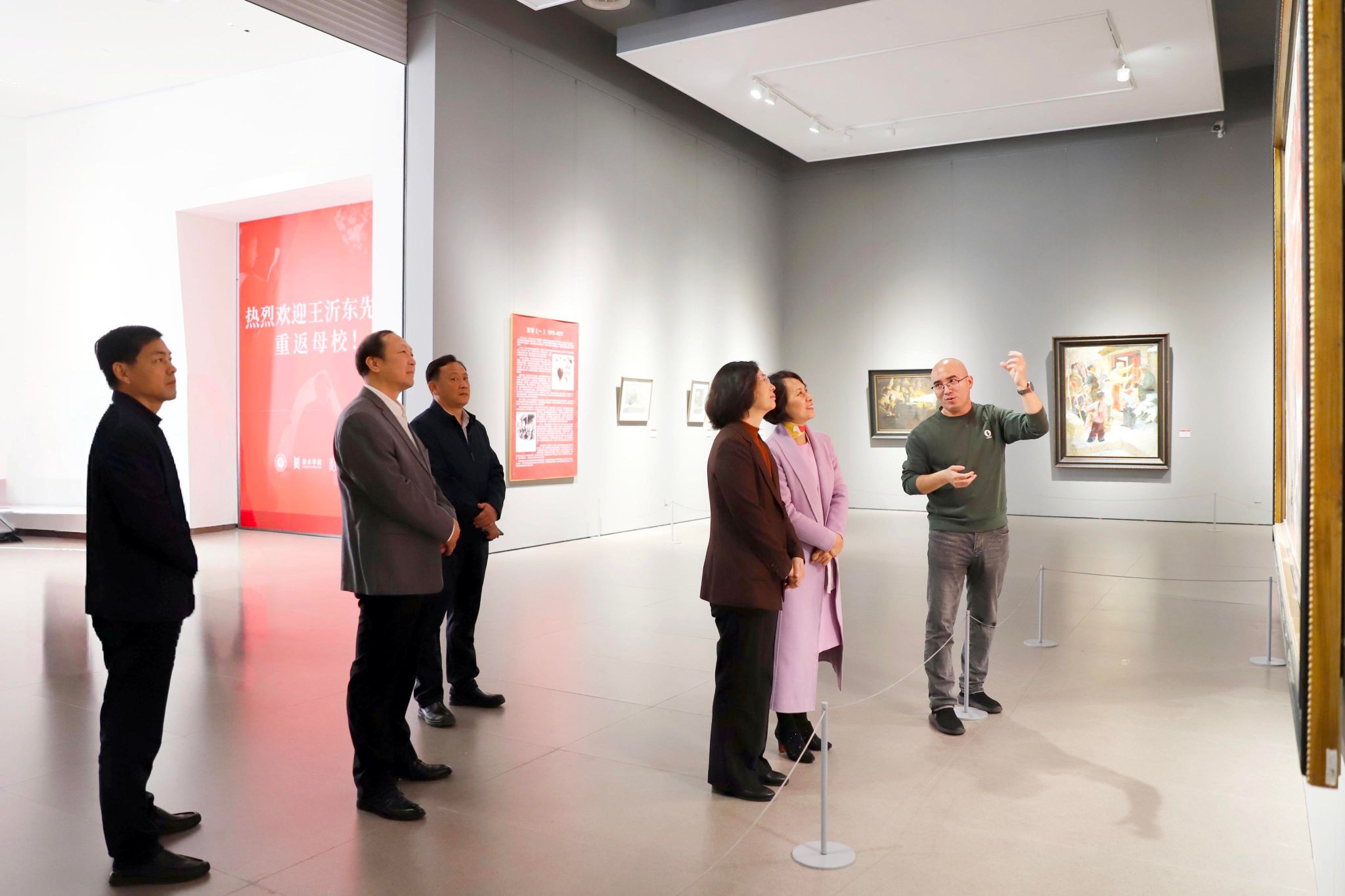 会前,卢国华一行参观了正在山艺美术馆展出的王沂东油画艺术作品展以及学校山东年画雕版博物馆、汉画像石馆、于希宁绘画艺术纪念馆。