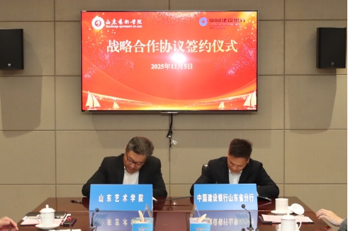 11月5日下午,我校与中国建设银行山东省分行举行战略合作签约仪式。山东艺术学院院长徐青峰,中国建设银行山东省分行党委书记、行长文志军出席签约仪式。党办院办、发展规划处、财务处、信息技术中心、鲁艺(山东)产业发展有限公司等有关负责同志参加签约仪式。