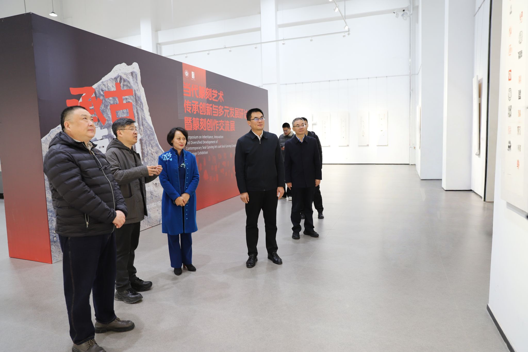 本次活动由中国书协篆刻委员会、山东艺术学院主办,山东艺术学院艺术实践与创作处、书法学院、美术馆承办。展览集中呈现了中国书法家协会第八届篆刻委员会委员及部分高校教师的篆刻作品、战国齐陶文题跋作品、战国齐系陶文实物等,既有传统印风的演绎,亦不乏现代审美语境下的创新探索,充分彰显了当代篆刻“承古萌新”的发展态势。