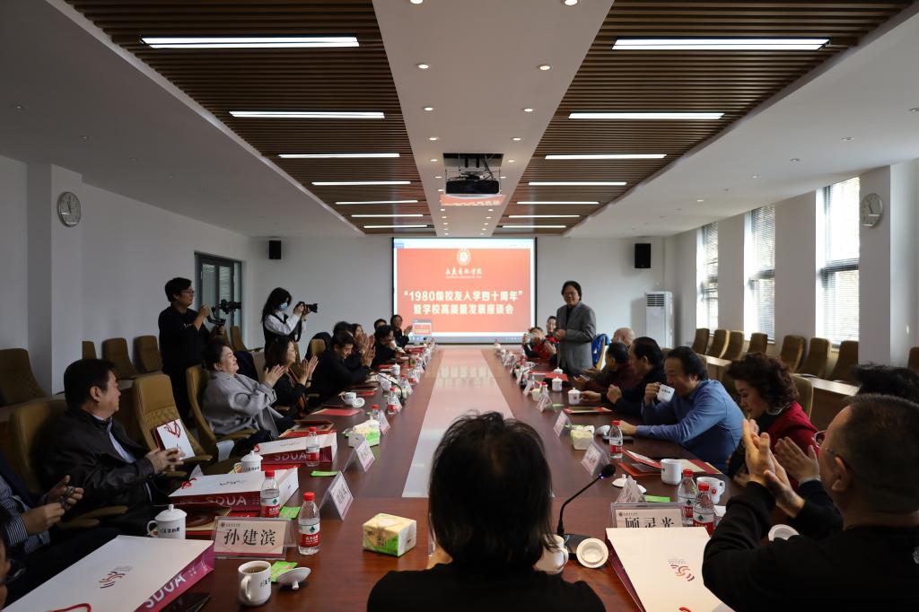 座谈会上,校友们踊跃发言,分享入学四十年的成长经历,深情回忆当年在校时的场景,畅谈学校四十年来发生的巨大变化,并由衷感谢母校的培养。大家纷纷表示在学校高质量发展的新阶段和关键时期,将更加积极地为母校发展建言献策,更加有力地支持母校的建设和发展,共同推动母校事业发展再创新辉煌。