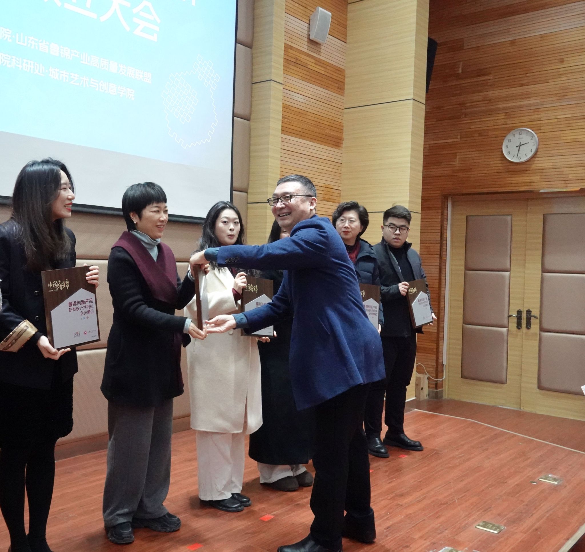12月16日,鲁锦创新产品研发设计共同体成立大会暨研讨会在我校长清校区举行。山东省工业和信息化厅轻工纺织产业处副处长朱喆,学校党委委员、副院长韩文涛出席活动并致辞。共同体成员单位代表,学校科研处、城市艺术与创意学院相关负责人参加活动。共同体成立仪式由科研处处长胡春景主持。
