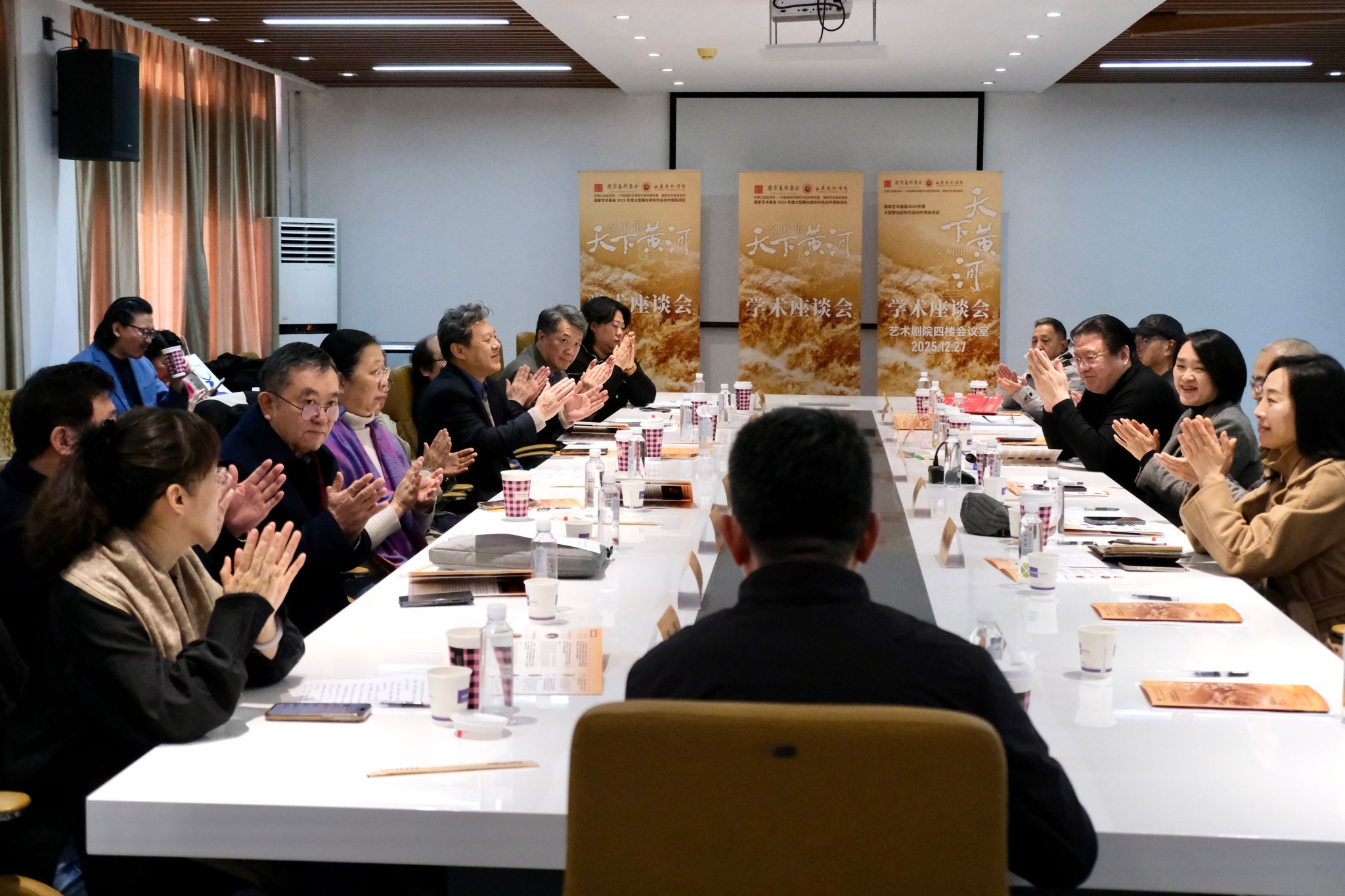 12月27日,国家艺术基金2025年度大型舞台剧和作品创作资助项目交响乐《天下黄河》首演学术座谈会在山东艺术学院文东校区艺术剧院会议室举办。