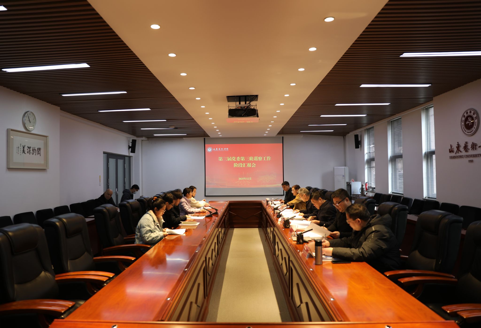 12月31日,学校在长清校区召开第三届党委第三轮巡察工作阶段汇报会。学校巡察工作领导小组副组长、党委副书记苏茂兴,党委委员、纪委书记、省监委驻学校监察专员周立志出席会议。巡察工作领导小组、各巡察组成员参加会议。会议由周立志主持。