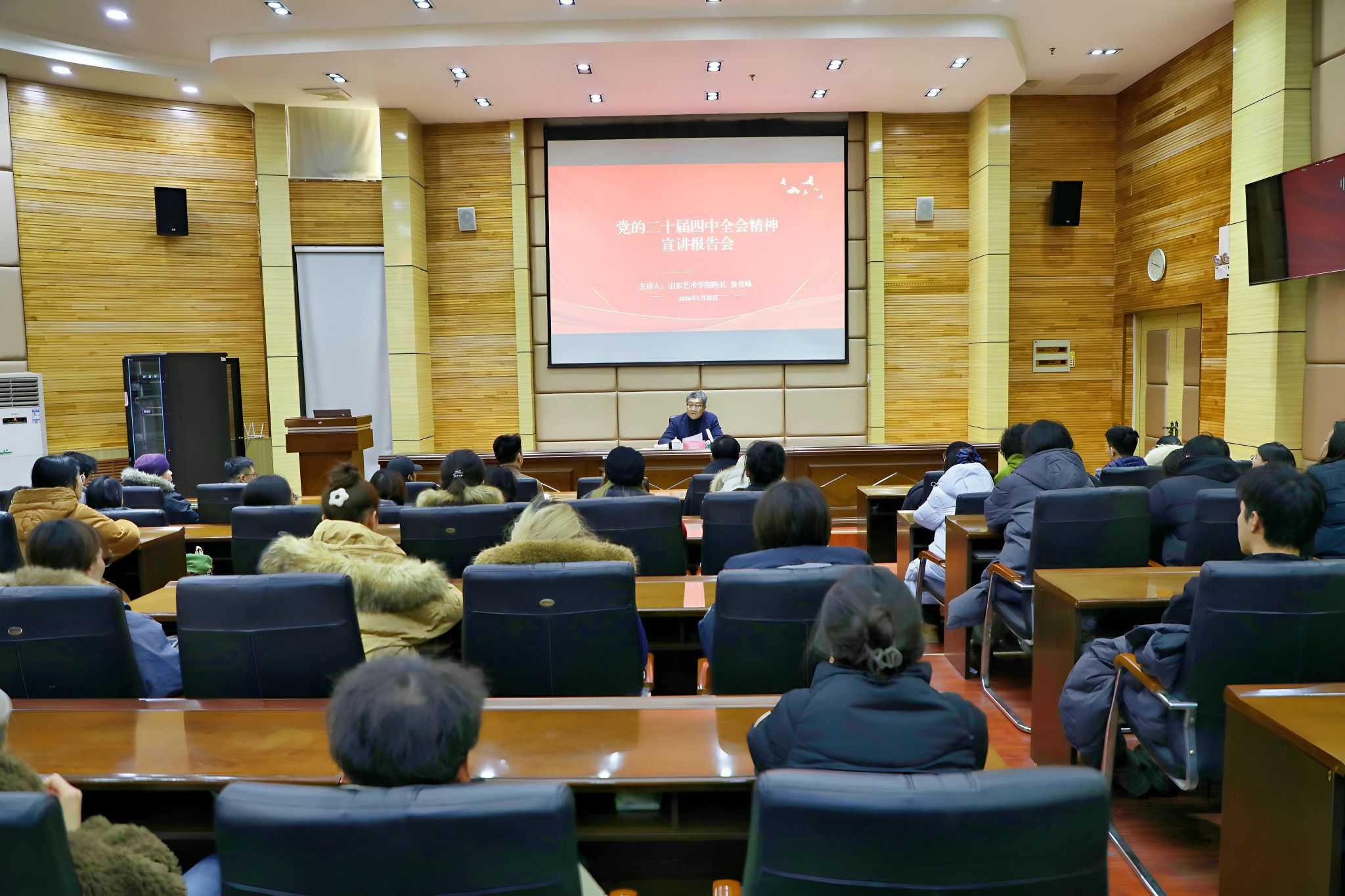 1月20日,院长徐青峰以“学习贯彻全会精神,立足实际挺膺担当,为建设现代化高水平艺术大学贡献力量”为题,在长清校区办公楼报告厅为师生宣讲党的二十届四中全会精神。