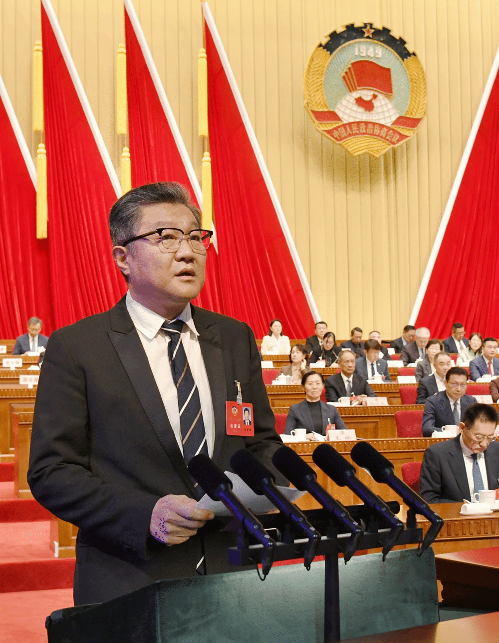 1月28日下午,省政协十三届四次会议在山东会堂举行第二次全体会议。中共山东省委书记、省人大常委会主任林武,省委副书记、省长周乃翔,省政协主席葛慧君等省领导出席会议,省委、省政府有关部门负责同志到会听取委员发言。会议由省政协副主席孙继业主持。省政协常委、山东艺术学院院长、省文联主席、省美协主席徐青峰出席会议并作大会发言。
