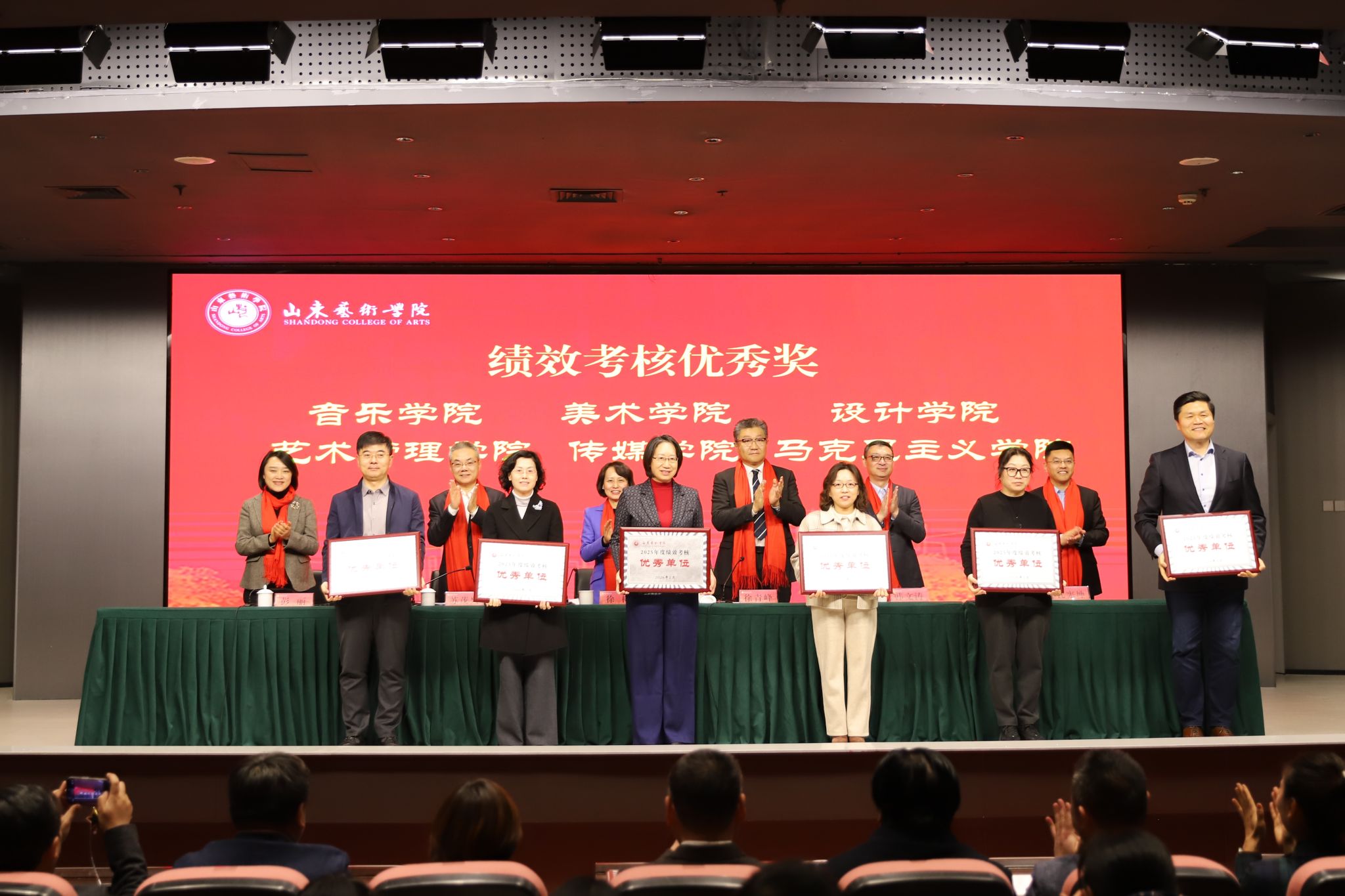 学校绩效考核优秀奖获奖单位代表科研处、美术学院、设计学院负责人,干事创业先进集体获奖单位代表学生工作部负责人、教学单位突出成就奖获奖单位戏曲与曲艺学院负责人、服务保障奖获奖单位代表离退休工作处负责人先后作交流发言。