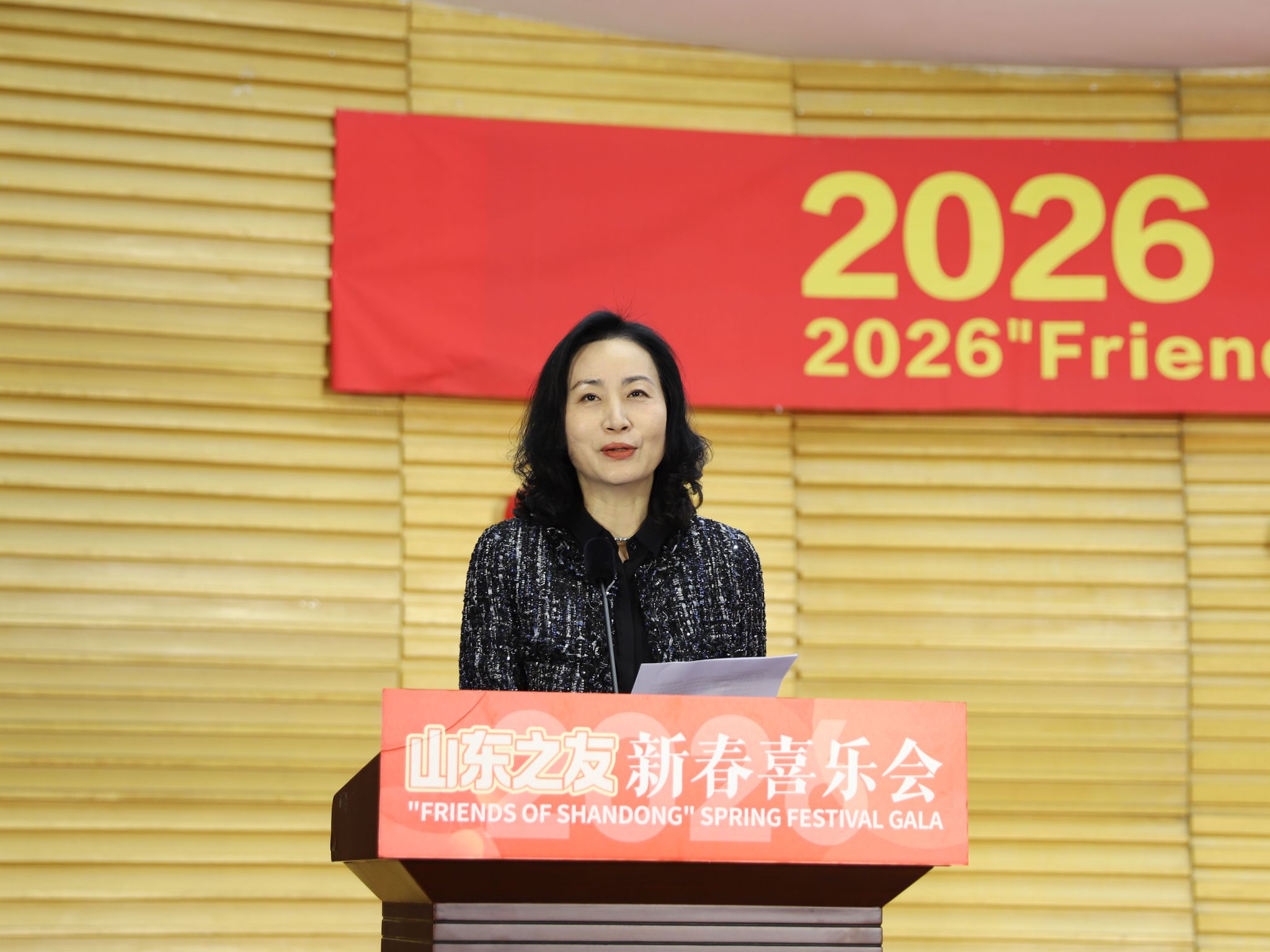 陈白薇向参加活动的嘉宾、我校师生、台前幕后演职人员致以诚挚的新春问候和美好祝福,她表示,各位国际友人是连接山东与世界的“民心之桥”、促进中外相知相融的“民间大使”,山东发展与外事工作离不开大家的信任与支持。文艺演出活动以艺术为媒、情谊为桥,深化中外文化交流和友谊。新的一年恰逢马年,寓意活力与奋进,将持续深化对外交流,讲好山东故事、传递中国声音,助力山东更好走向世界、拥抱世界。