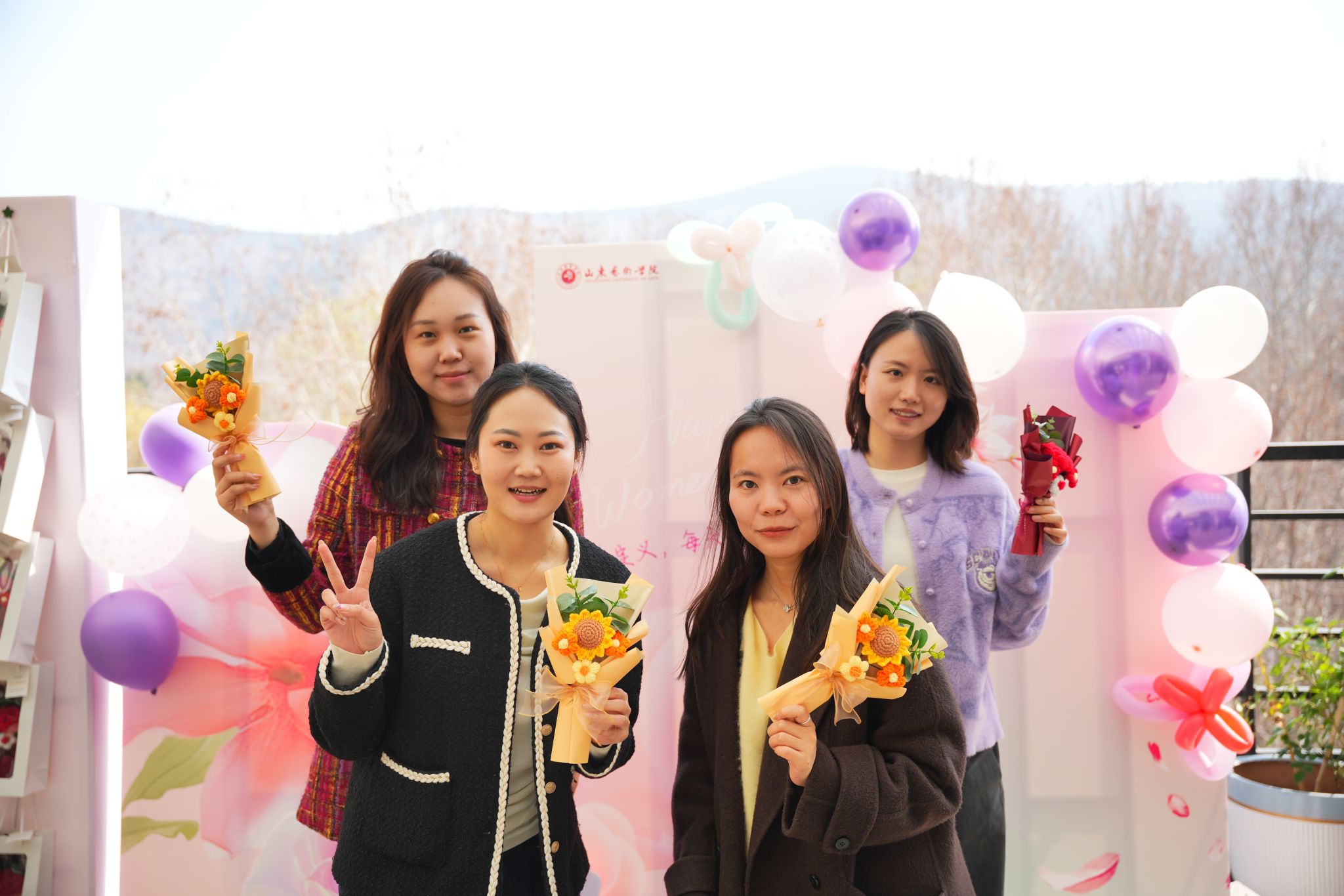 活动现场设置春日寻趣、芳华留影两个环节,吸引大批师生踊跃参与。志愿者为大家送上编织花束,将春日温柔与美好祝福藏于手心;氛围感打卡区引得众人纷纷驻足,定格最美瞬间,留存专属温暖记忆。大家在轻松互动中暂别忙碌,共赴美好。