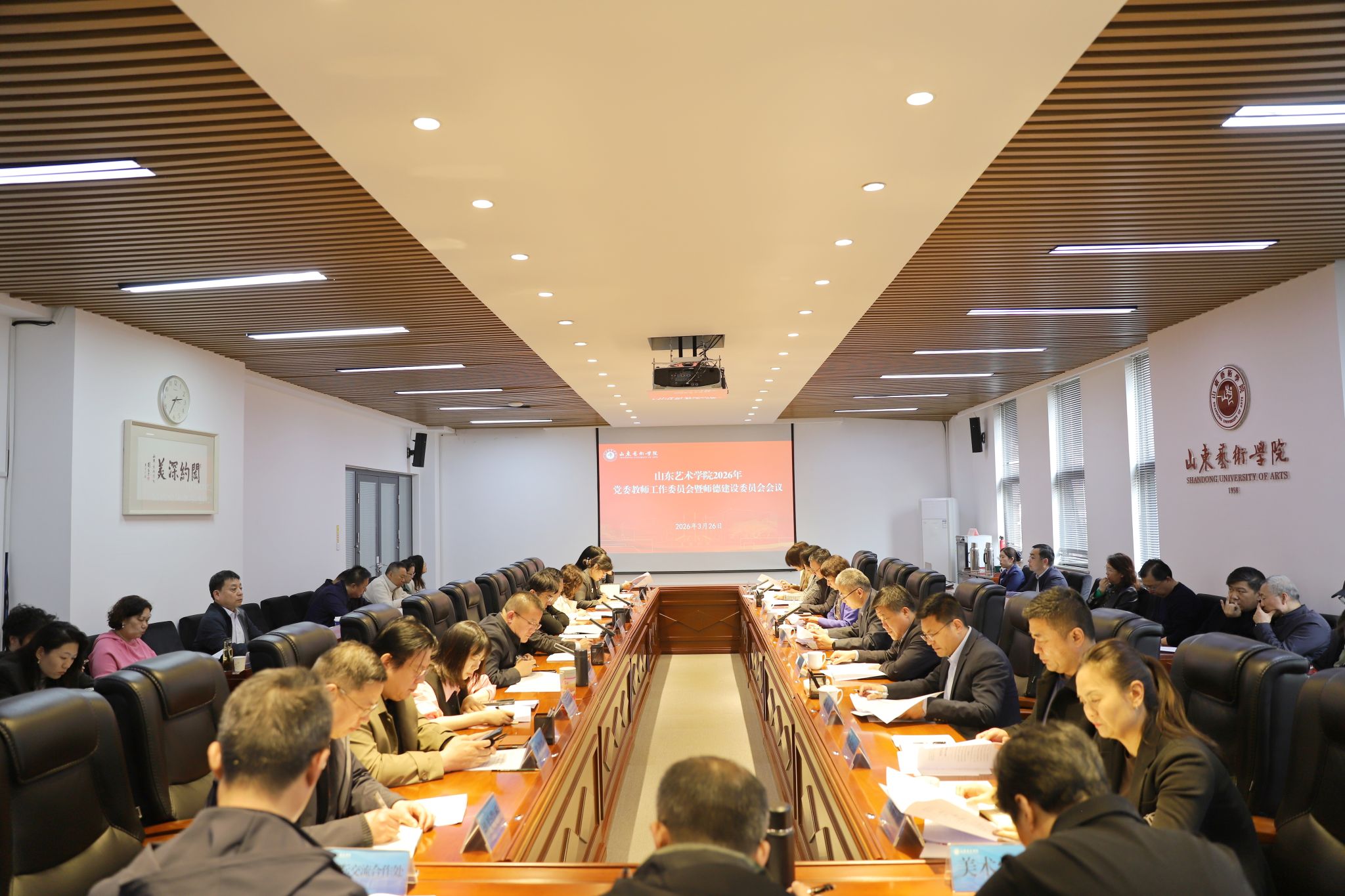 3月26日,学校在长清校区召开2026年党委教师工作委员会暨师德建设委员会会议。党委书记徐梅出席会议并讲话,党委副书记苏茂兴,党委委员、副院长韩文涛,党委委员、纪委书记、省监委驻学校监察专员周立志,党委委员、宣传部部长孔宪坤出席会议。会议由副院长彭丽主持。党委教师工作委员会成员、分委会主任,师德建设委员会成员参加会议。