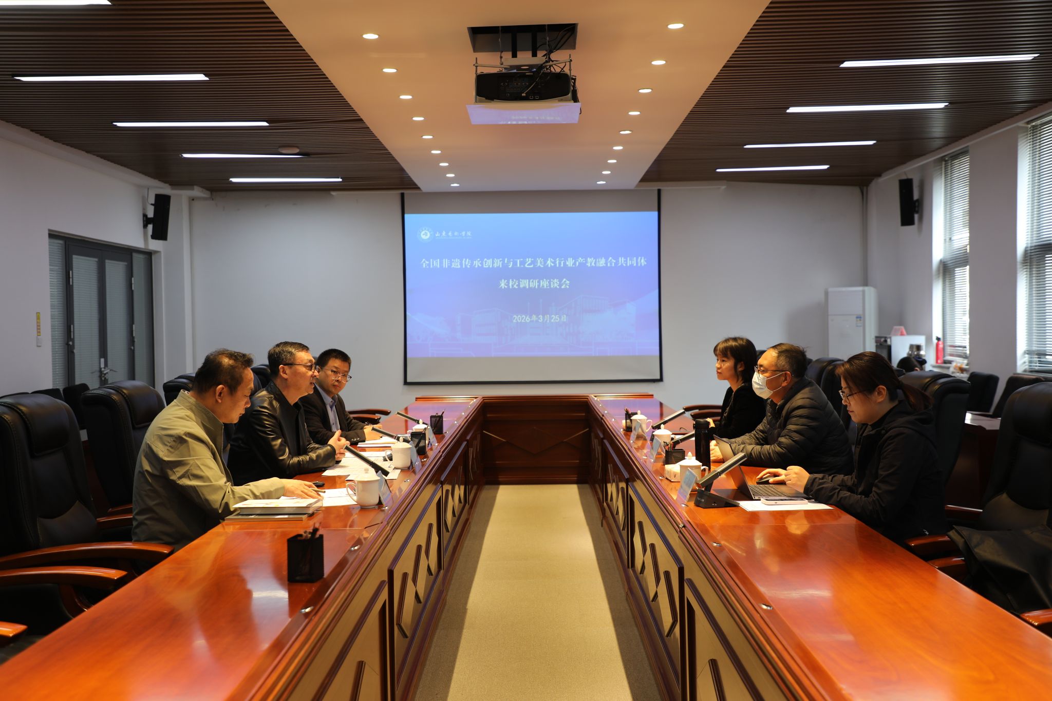 3月25日上午,全国非遗传承创新与工艺美术行业产教融合共同体(以下简称共同体)秘书长戎志宏一行3人来校调研座谈。学校党委委员、副院长韩文涛出席座谈会,合作发展中心、设计学院相关负责同志与相关专业教师参加活动。
