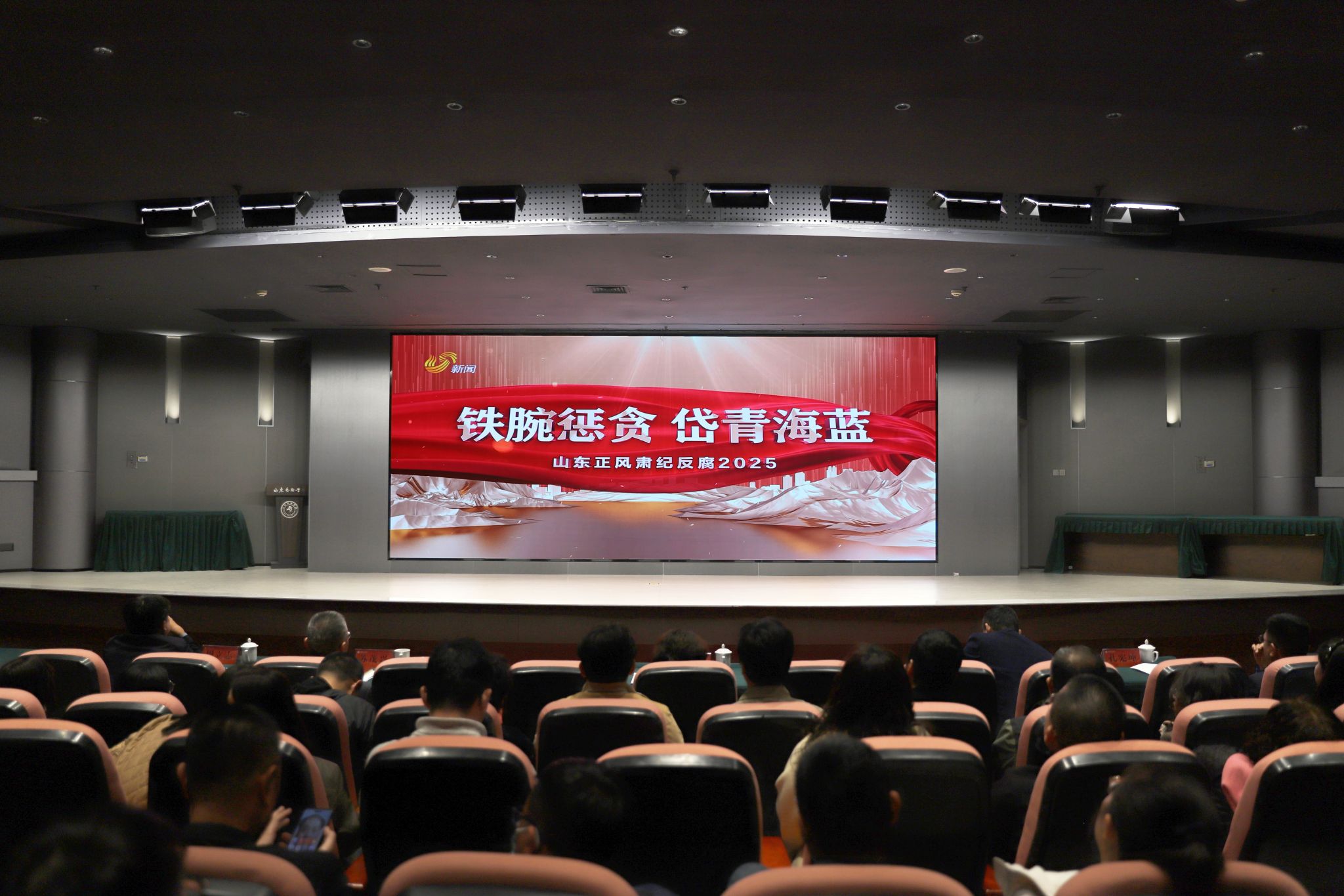 全体参会人员观看了警示教育片《山东正风肃纪反腐2025——铁腕反腐惠民生》。广大党员干部纷纷表示,通过警示教育进一步强化了纪律意识、规矩意识和廉洁意识,做到知敬畏、存戒惧、守底线,将以更加清廉的作风、更加务实的担当,推动学校全面从严治党向纵深发展,为建设现代化高水平艺术大学提供坚强纪律保障。