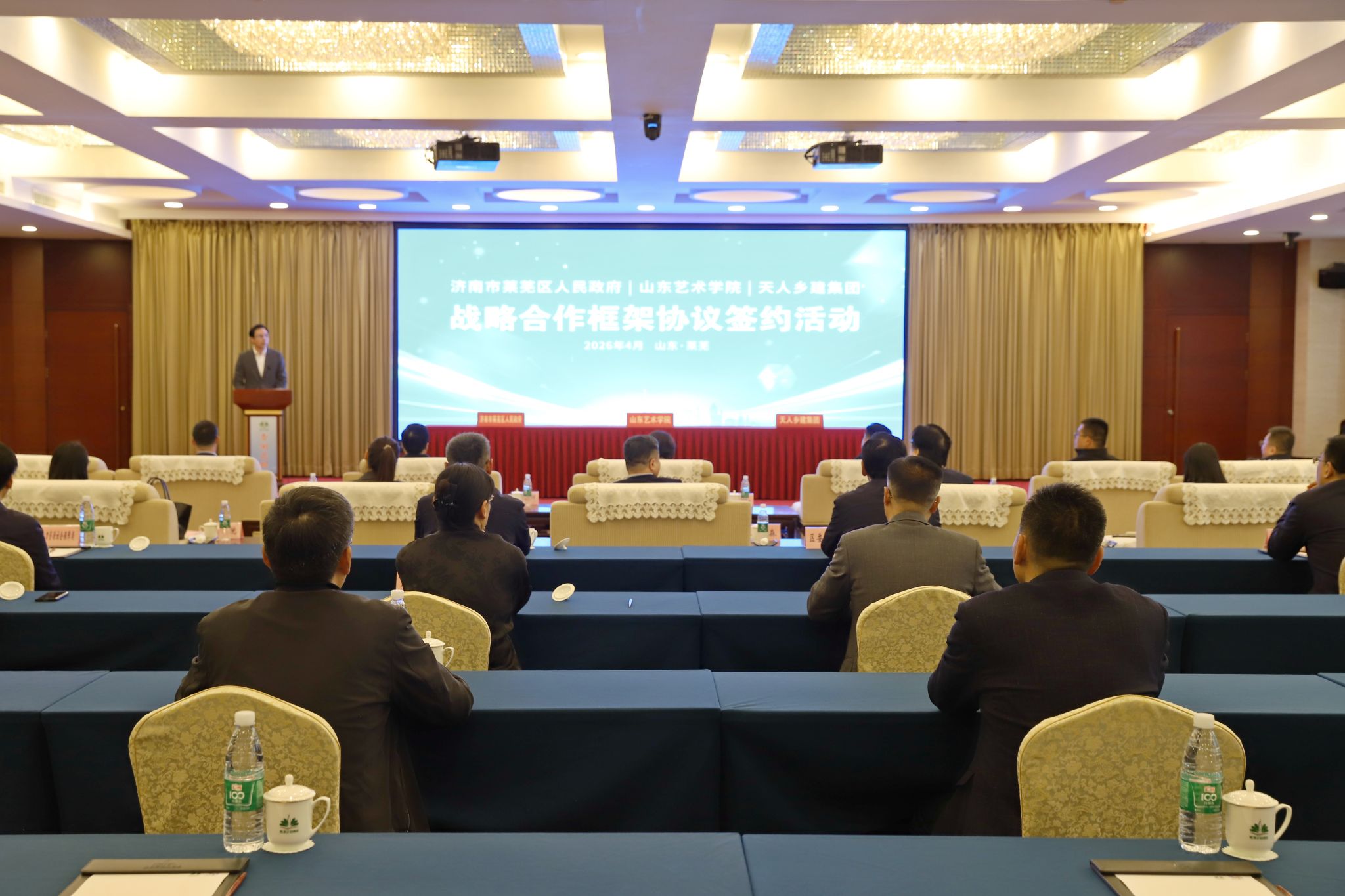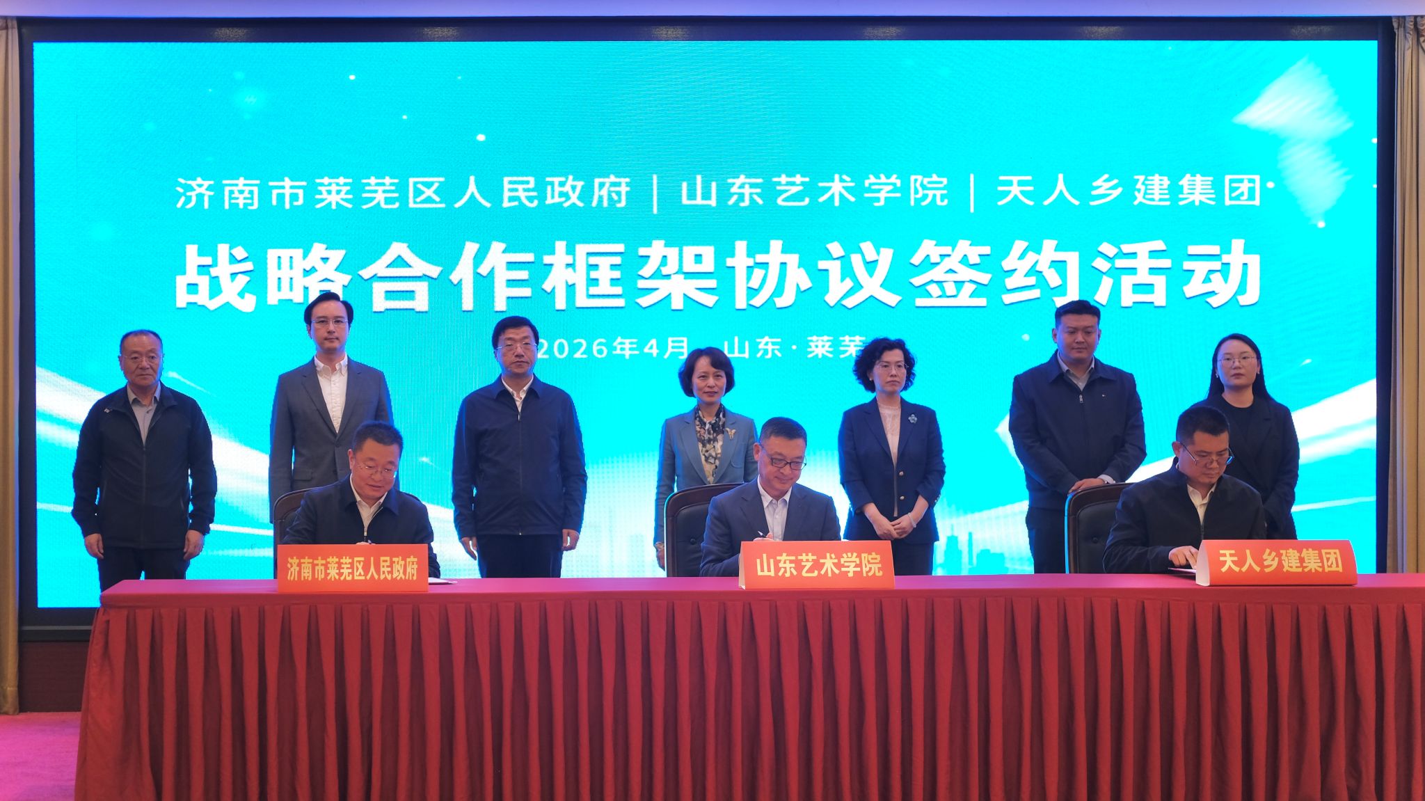 4月7日下午,学校与莱芜区、天人乡建集团在雪湖花园酒店举行“艺术乡建合作发展战略框架协议”签约仪式。学校党委书记徐梅,莱芜区委副书记、区长李光辉,天人乡建集团董事长孙汉雷出席活动并致辞。莱芜区委常委、办公室主任弭学峰主持签约仪式。