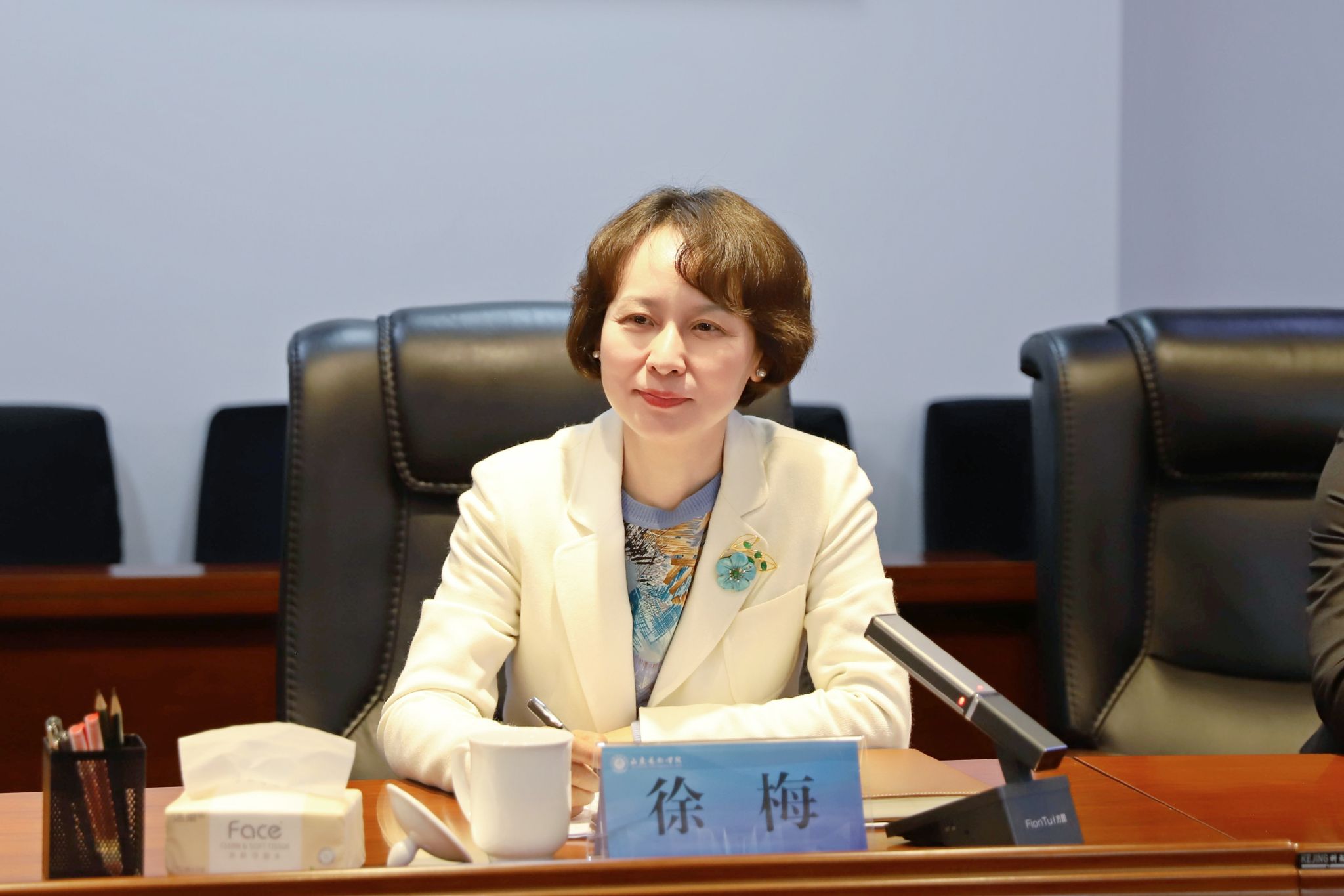 座谈会上,徐梅代表学校对刘常青、李东一行的到来表示欢迎,简要介绍了我校“11574”高质量发展体系与“十五五”规划期间发展目标,以及博士单位建设、学科提质、科研创作、开放办学等方面的情况。徐梅指出,学校在艺术教育、创作研究等领域积淀深厚,青岛黄海学院在应用型人才培养、产教融合等方面特色鲜明,两校办学定位互补、发展需求契合,具备广阔的合作空间。希望以此次交流座谈为契机,搭建常态化沟通交流平台,进一步拓展合作领域,实现优势互补、协同发展。