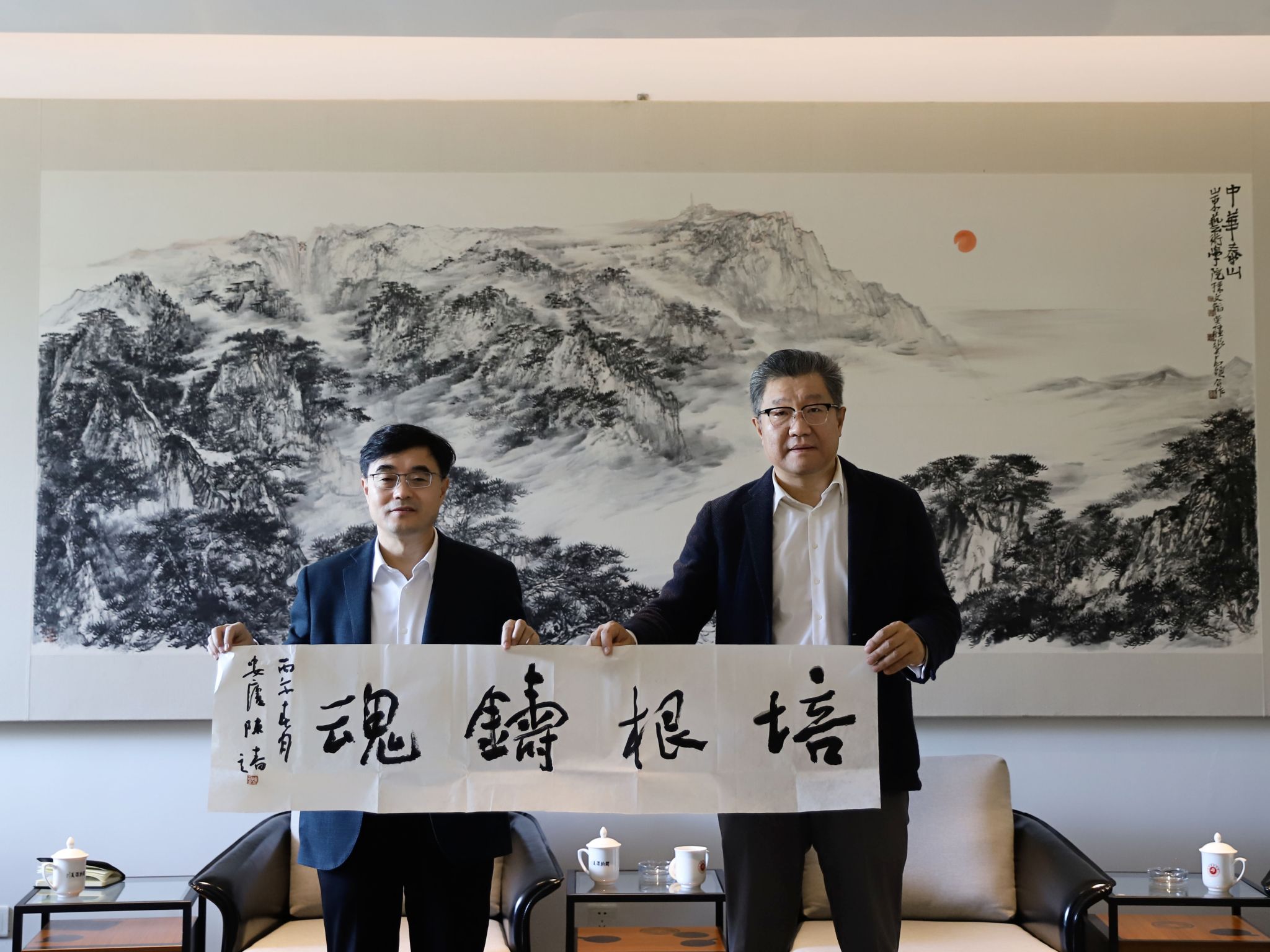 徐青峰代表学校与青岛黄海学院互赠礼物,传递两校情谊、共祝合作顺遂。