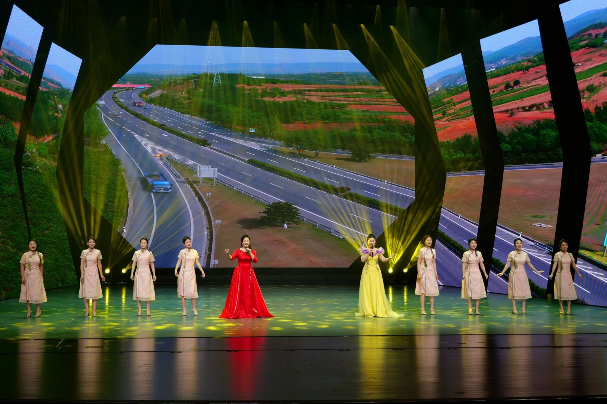 “曲韵千年传雅意,檀板丝弦说古今。科创万象启新声,光影数据绘未来。”演出在我校舞蹈学院颜培旭、李悦颜等表演的舞蹈《你好未来》的动感旋律中拉开帷幕——智能机器人随着鼓点翩翩起舞。当机械臂划出人类身段的优美韵律,瞬间点燃全场热情,一场传统艺术与现代科技交相辉映的视听盛宴正式开启。