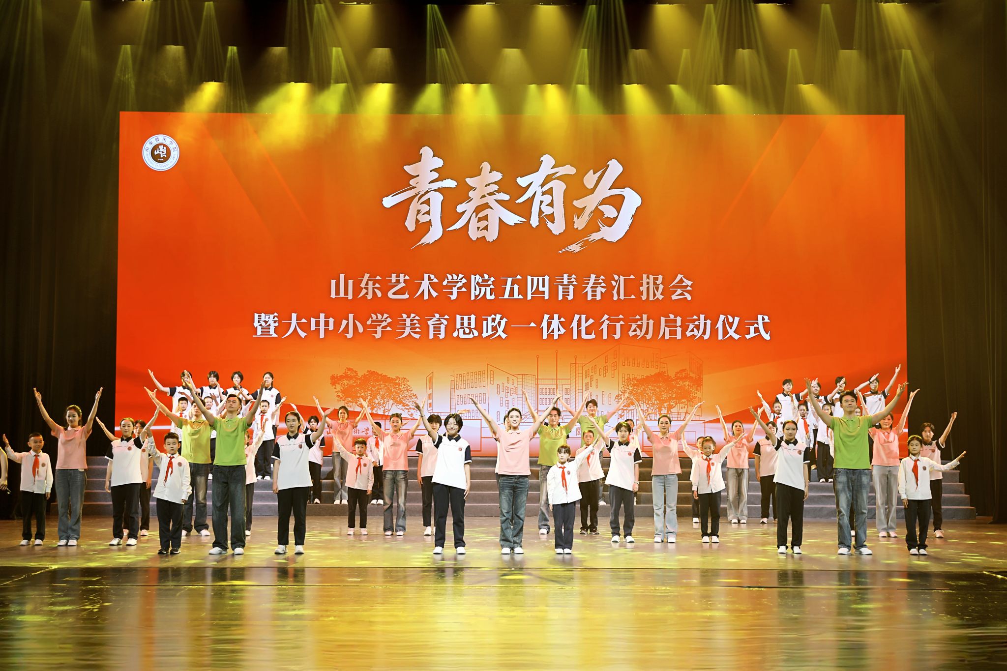 4月28日下午,青春有为——山东艺术学院五四青春汇报会暨大中小学美育思政一体化行动启动仪式在长清校区大剧场举行。山东艺术学院党委书记徐梅,共青团山东省委副书记张晓博,学校党委副书记苏茂兴,党委委员、纪委书记、省纪委驻校监察专员周立志,省教育厅体育卫生与艺术教育处处长王桂龙,长清区委常委、宣传部部长唐金波,学校党委委员、宣传部部长孔宪坤,济南市长清大学城实验学校党委书记张绪儒、共青团长清区委书记李艳艳、济南市少先队总辅导员吕继青、长清区教体局副局长王培震出席活动。我校1997级艺文系校友、第十四届全国政协委员、作家学者魏新应邀出席。