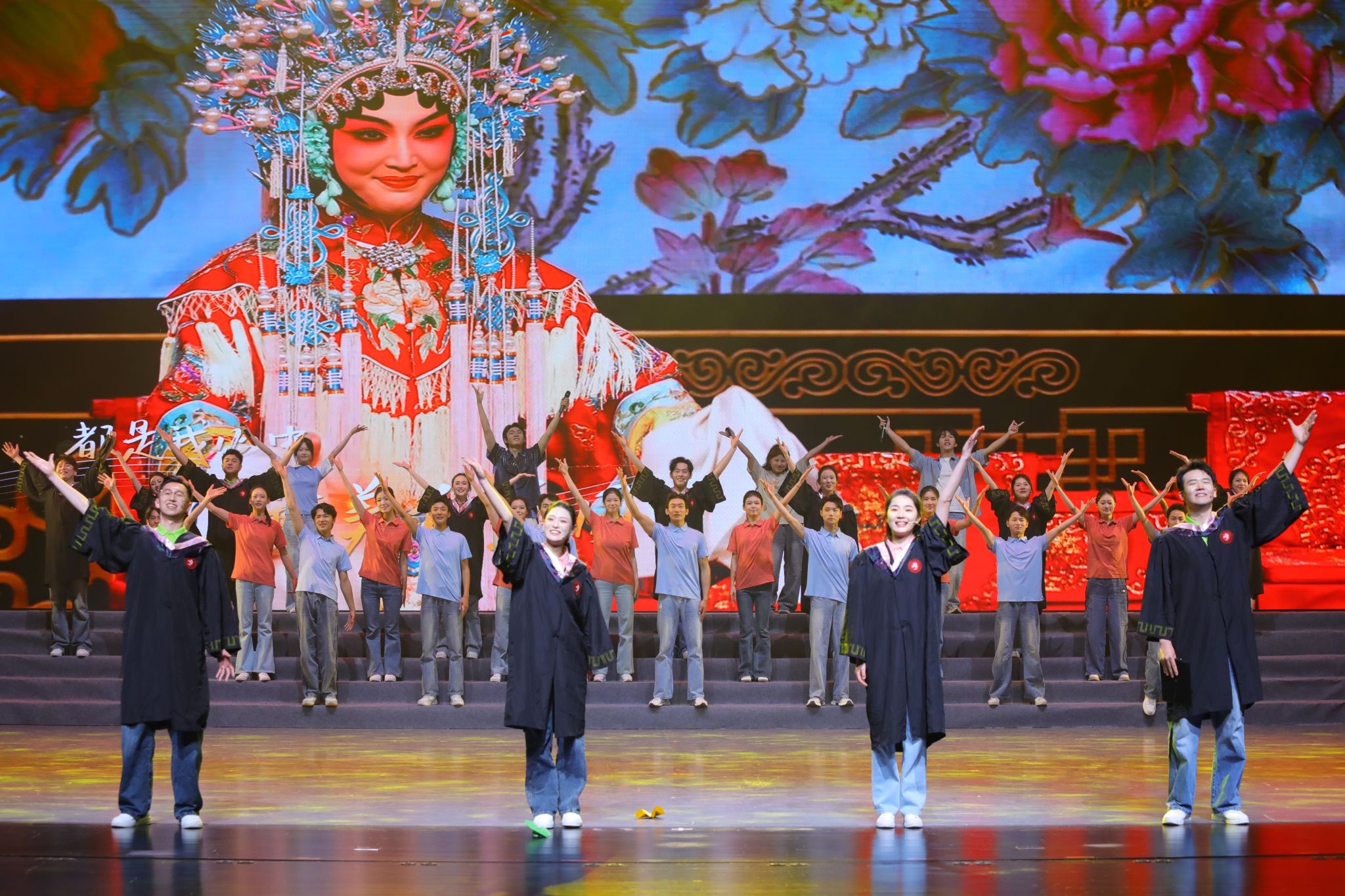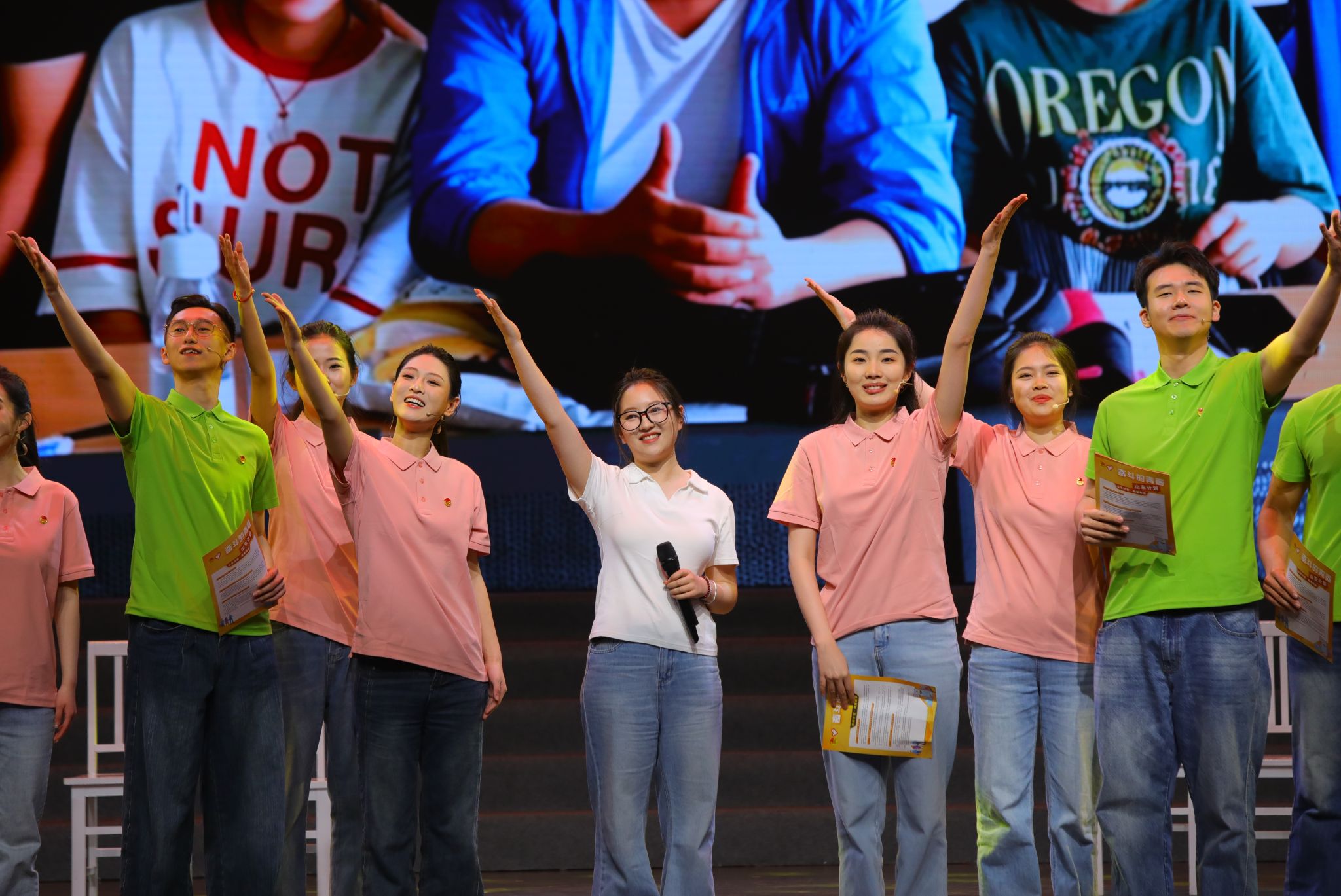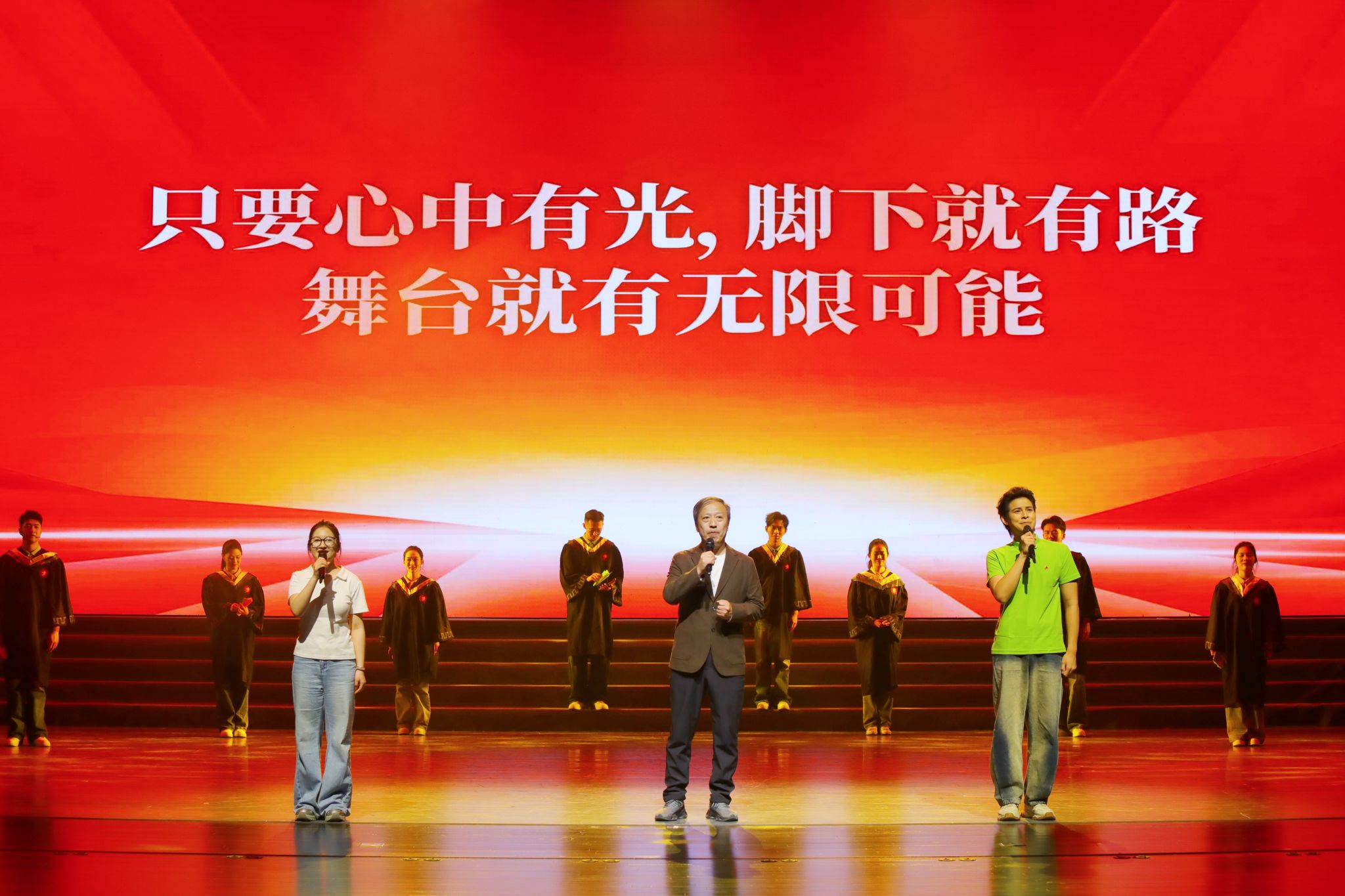 本次活动以“向上、聚力、奋斗、成长”四个青春篇章为主线,以仪式启动、情景演绎、节目展演、榜样分享、表彰颁奖等形式,全面展示了我校美育与思政教育深度融合、同向同行的育人成效,展现了山艺青年青春有为、挺膺担当的精神风貌。情景剧《种下美好》、大中小学生合唱《在灿烂阳光下》生动展现了我校美育志愿服务的温暖场景;情景剧《读书之问》、魏新“闳美课堂”阅读分享、戏曲《绣红旗》、舞蹈《沂蒙那座——桥》,引导广大青年深度阅读、厚植爱国情怀;西部计划志愿者于佳演绎《到西部去》、音乐剧《花儿永远这样红》致敬援疆精神。2026届毕业生王瑞基在成长分享中深情致谢母校培养,以七年求学成长历程传递“学艺先做人”初心,发出青春宣言。活动在全场高唱《我相信》的热烈氛围中落下帷幕。