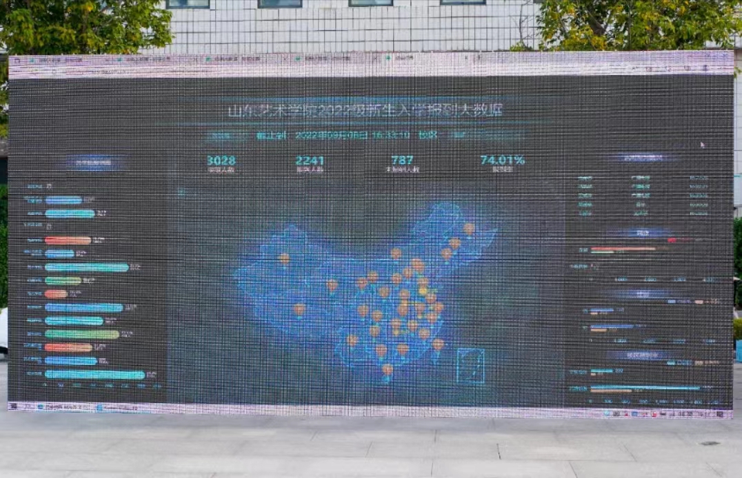 报到数据可视化。通过“山东艺术学院2022级新生入学报到大数据”展屏,实时公布各二级学院新生的报到动态情况;党委宣传部通过微信、微博、抖音等新媒体平台发布了活泼生动的入学指南;二级学院也纷纷通过微信公众平台、微信工作群推送新生入学报到有关事项,提供查询服务。高效便捷的网络信息化服务,让学生和家长能够提前知晓学校报到工作信息,最大程度为学生提供服务便利。