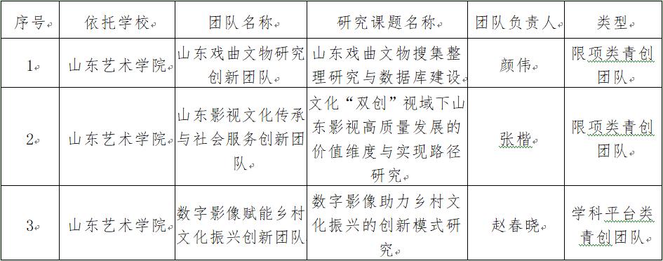 近日,省教育厅公布了2022年度山东省高等学校“青创团队计划”团队认定名单,我校申报的“山东戏曲文物研究创新团队”“山东影视文化传承与社会服务创新团队”“数字影像赋能乡村文化振兴创新团队”等3个团队入选。