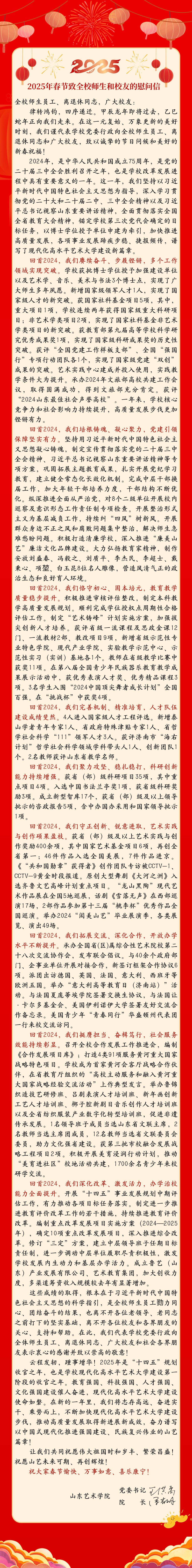 2025年春节致全校师⽣和校友的慰问信