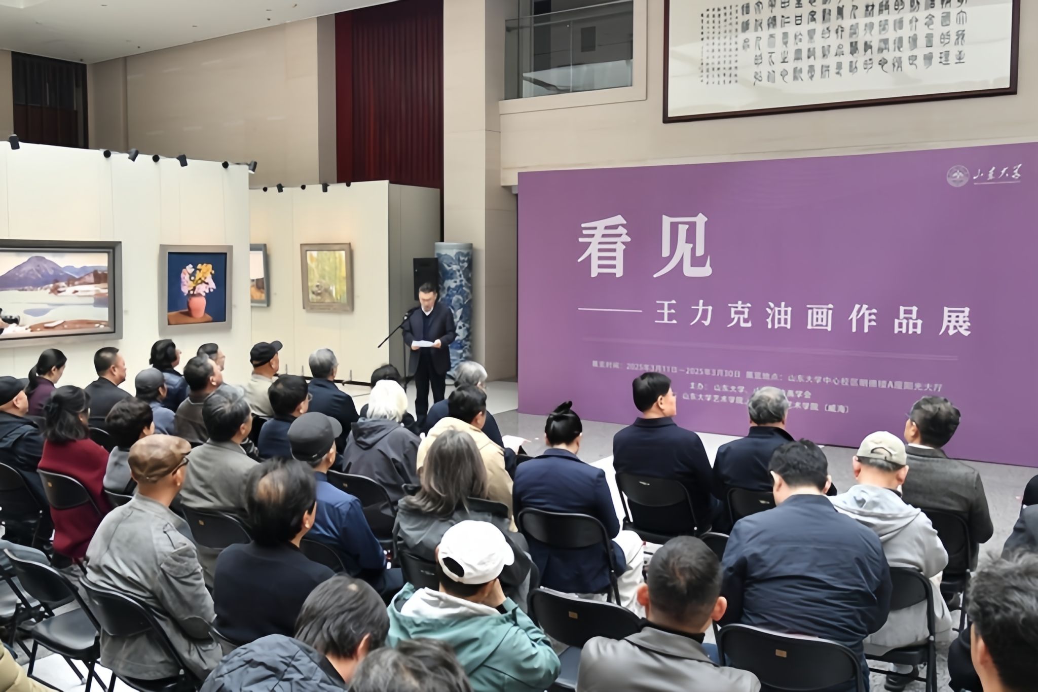 3月11日,“看见——王力克油画作品展”在山东大学中心校区开幕,山东艺术学院院长、省文联主席、省美协主席徐青峰出席开幕式并致辞。