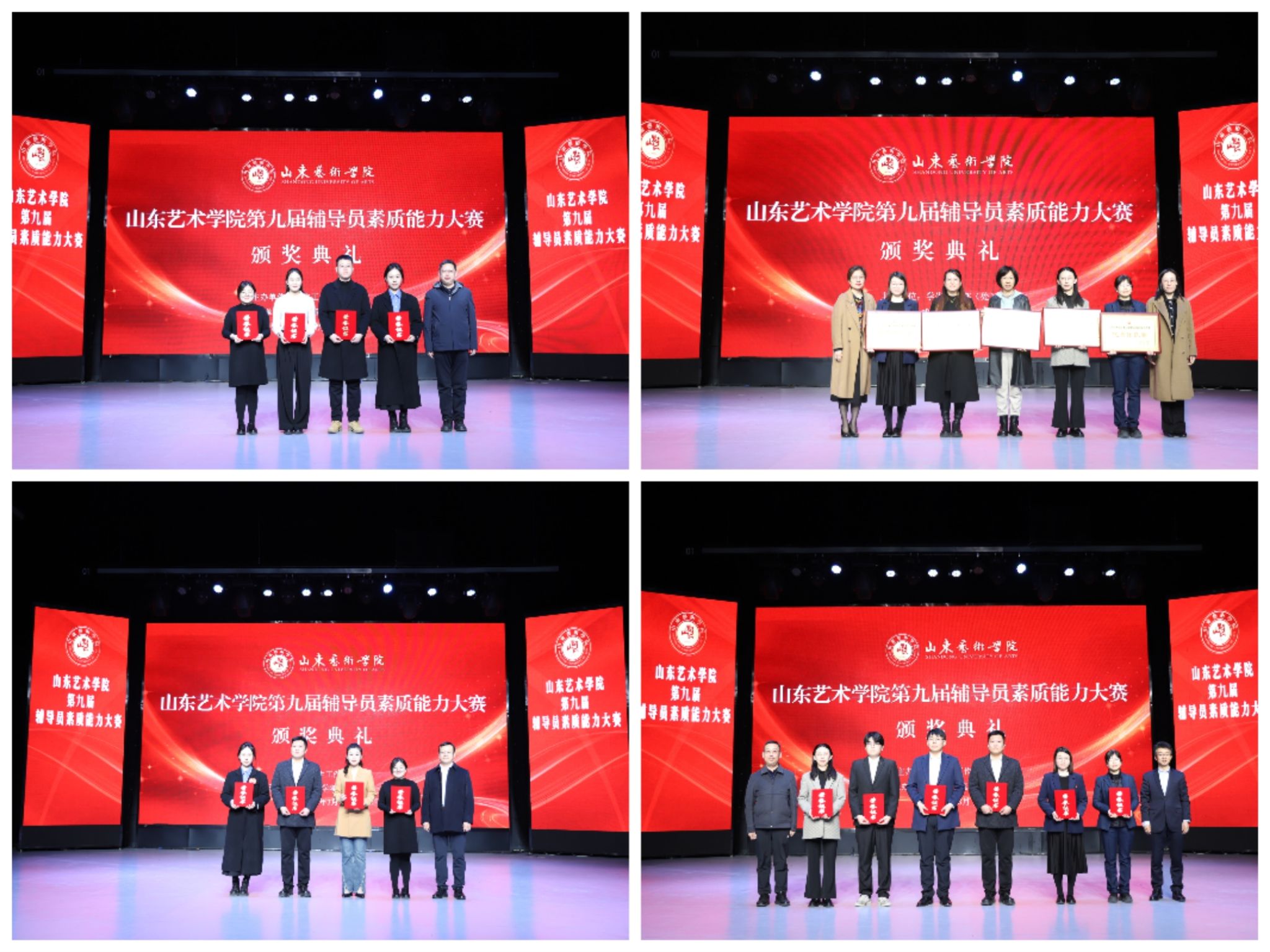 本次辅导员素质能力大赛按照“校内比赛、省赛标准”,分初赛、决赛两阶段进行,包括基础知识测试、理论宣讲、案例分析和谈心谈话四个环节。根据全部选手两个阶段四个环节的总成绩,最终评选出一等奖2名、二等奖4名、三等奖6名,单项奖4个,优秀团队奖5个。其中,现代音乐学院李晶莹、美术学院徐冰荣获一等奖,音乐学院李浩冉、设计学院李瑞雪、艺术管理学院臧钰、戏剧学院马振秀荣获二等奖,传媒学院苏严、王保梅、设计学院王志轩、舞蹈学院程增欢、美术学院田静、书法学院夏蕊蕊荣获三等奖;李晶莹荣获最佳博学奖、马振秀荣获最佳实务奖、李瑞雪荣获最佳口才奖、王志轩荣获最佳亲和力奖;设计学院、传媒学院、美术学院、书法学院、戏剧学院荣获优秀团队奖。于翊广对比赛进行了点评。