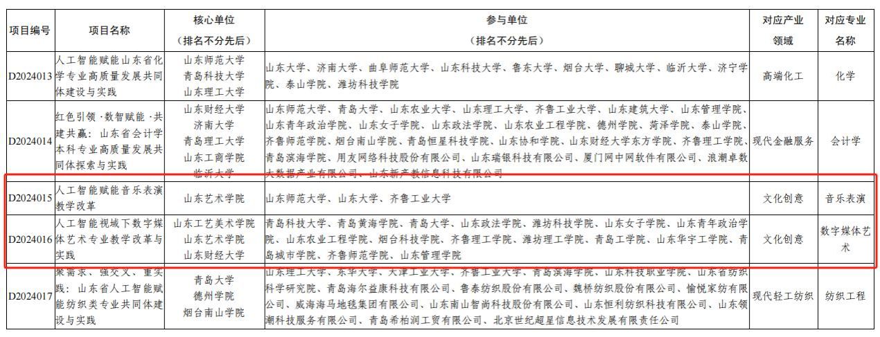 近日,山东省教育厅公布了2024年山东省人工智能赋能重点领域教学改革项目(简称“111计划”)立项名单,全省共立项16项,我校作为核心单位获批2项。