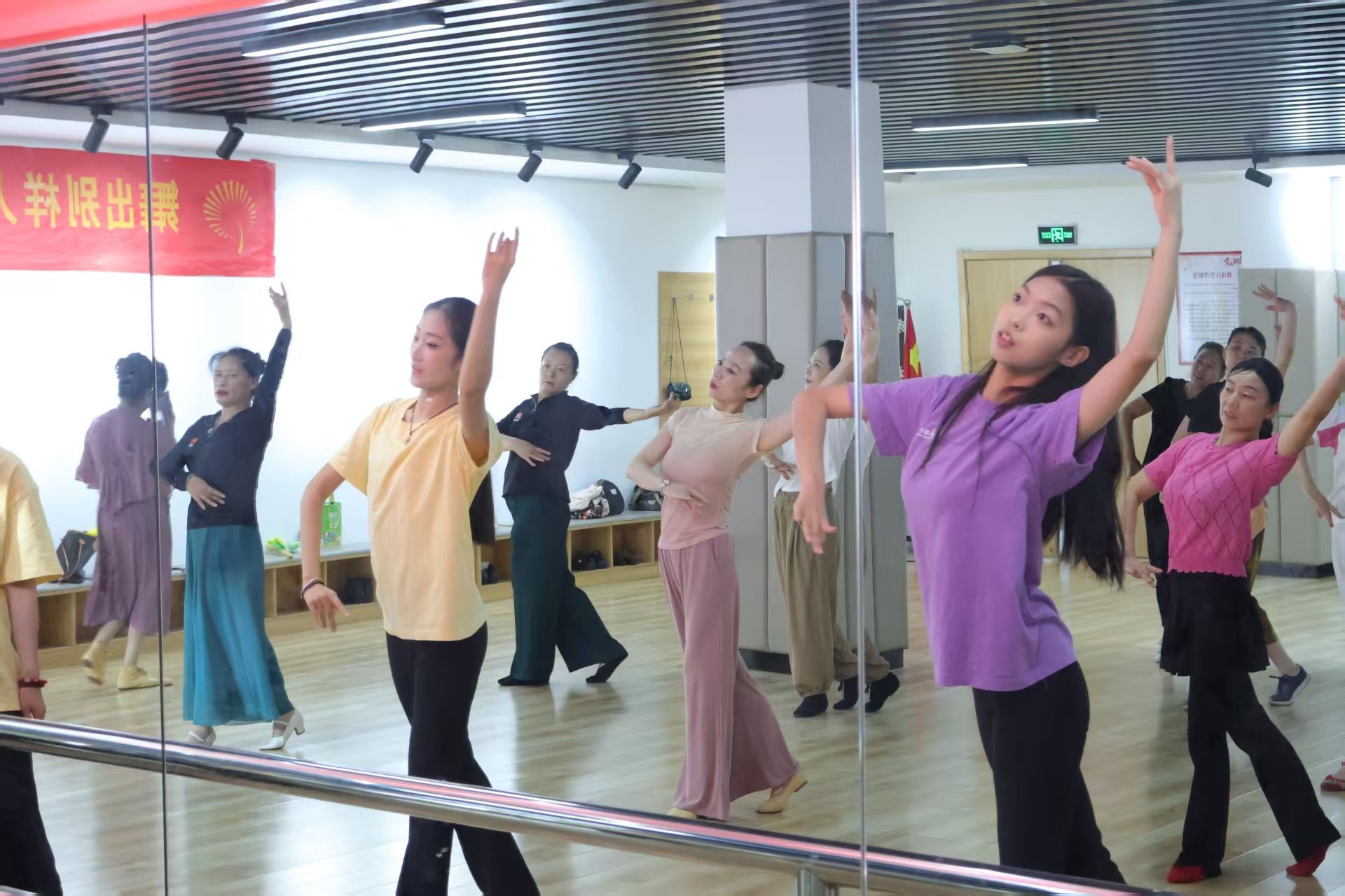 6月24日,师生在薛城区4个社区开设公益课堂。课上,师生根据不同年龄段居民的特点和需求,分类教授居民舞蹈技能。在“印象临城”,师生献上了一场精彩的惠民演出,开场舞《清影》点燃现场,藏族舞、傣族舞、蒙族等多民族舞蹈轮番登场,山东秧歌、东北秧歌,洋溢着地方风情,演出还融入音乐剧、诗朗诵,形式丰富。互动环节中,志愿者手把手教手绢花,邀市民体验东北秧歌,气氛热烈。演出以集体舞《一起跳舞吧》收尾。