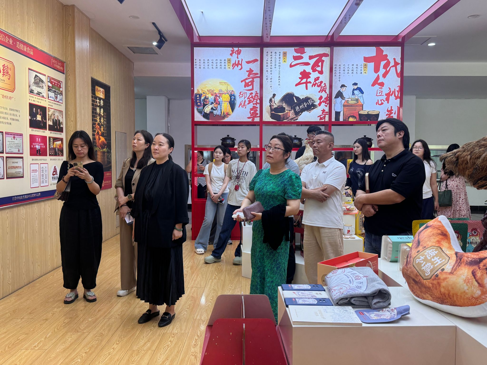 师生一行走进山东德州扒鸡集团有限公司,开展以“产业融合与人才培养”为主题的实践活动,围绕文创产品设计、就业拓岗等方面与企业工作人员深入交流。师生们发挥专业优势,从包装设计到品牌形象塑造,提出一系列将时尚元素融入传统美食的创意思路,为德州扒鸡注入新的文化内涵。