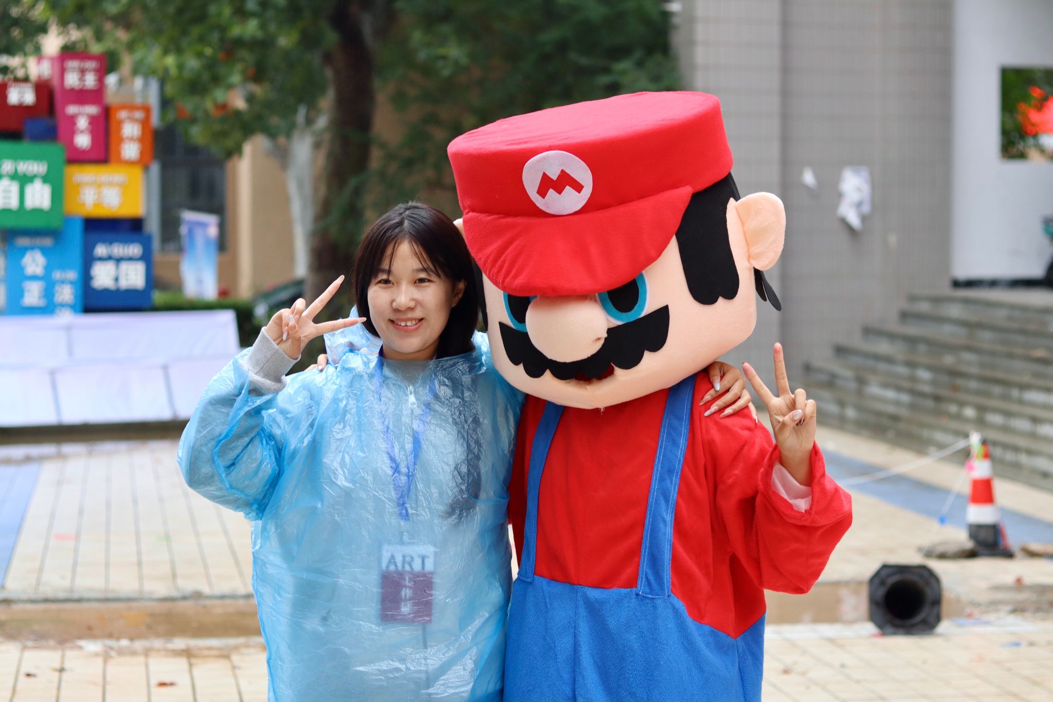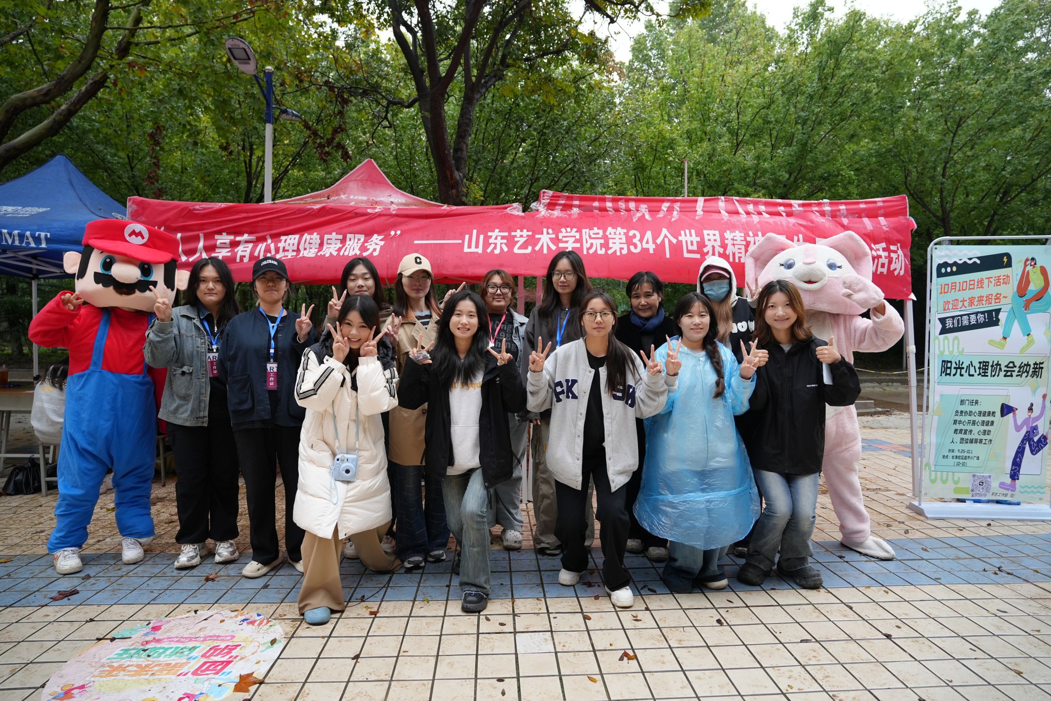 细雨带来的微凉,在“爱的抱抱”区域被一个拥抱彻底驱散。阳光心理协会的成员身穿玲娜贝尔与马里奥玩偶服,以温暖的拥抱传递着无声的支持,此刻的举动胜过千言万语。拍立得相机闪烁,将一张张洋溢着温暖与信任的笑脸,定格为秋日最珍贵的记忆。