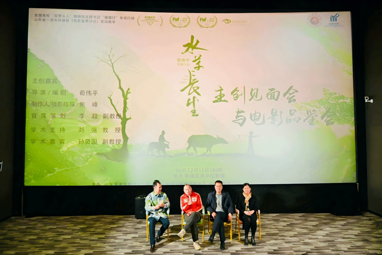 12月12日,传媒学院在幸福蓝海华亿影城举办电影《水草长生》主创见面会暨电影品鉴会。电影制片人、摄影指导焦峰与学院师生、观众齐聚一堂,展开深度交流。