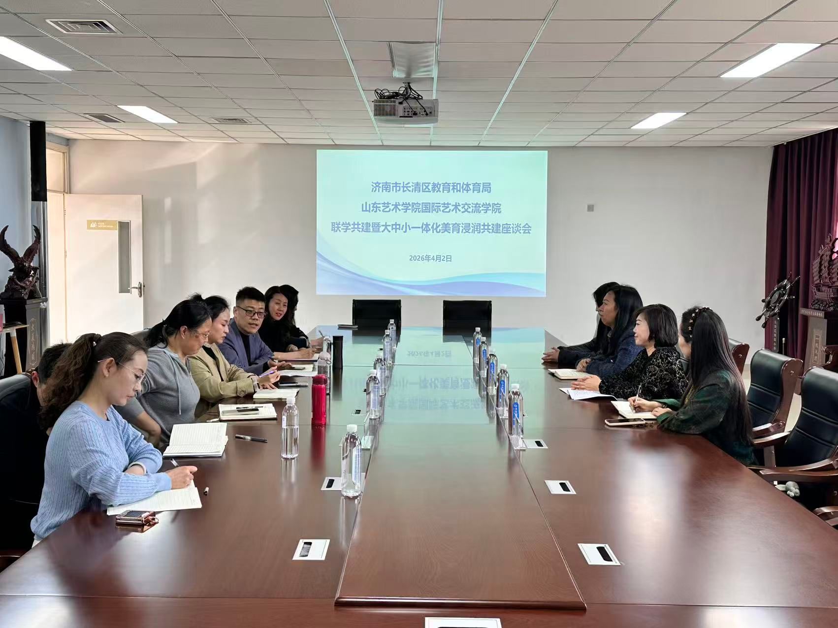 4月2日,国际艺术交流学院与长清区教育和体育局联学共建暨大中小一体化美育浸润座谈会在山东师范大学附属小学举行。长清区教育和体育局艺术科科长崔琳、山东师范大学附属小学校长刘冬梅、长清大学城实验学校小学部执行校长邵丽娜及相关工作人员,国际艺术交流学院党总支书记、副书记、团总支书记及师生代表参加座谈会。