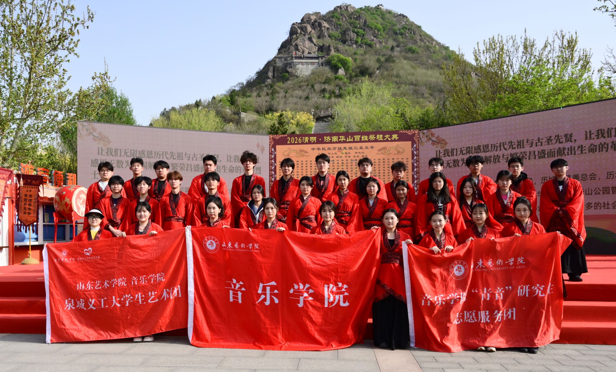 4月5日,2026济南·华山清明百姓祭祖大典在济南市历城区华山公园鹊华秋色广场举行。我校音乐学院师生受邀参加活动。