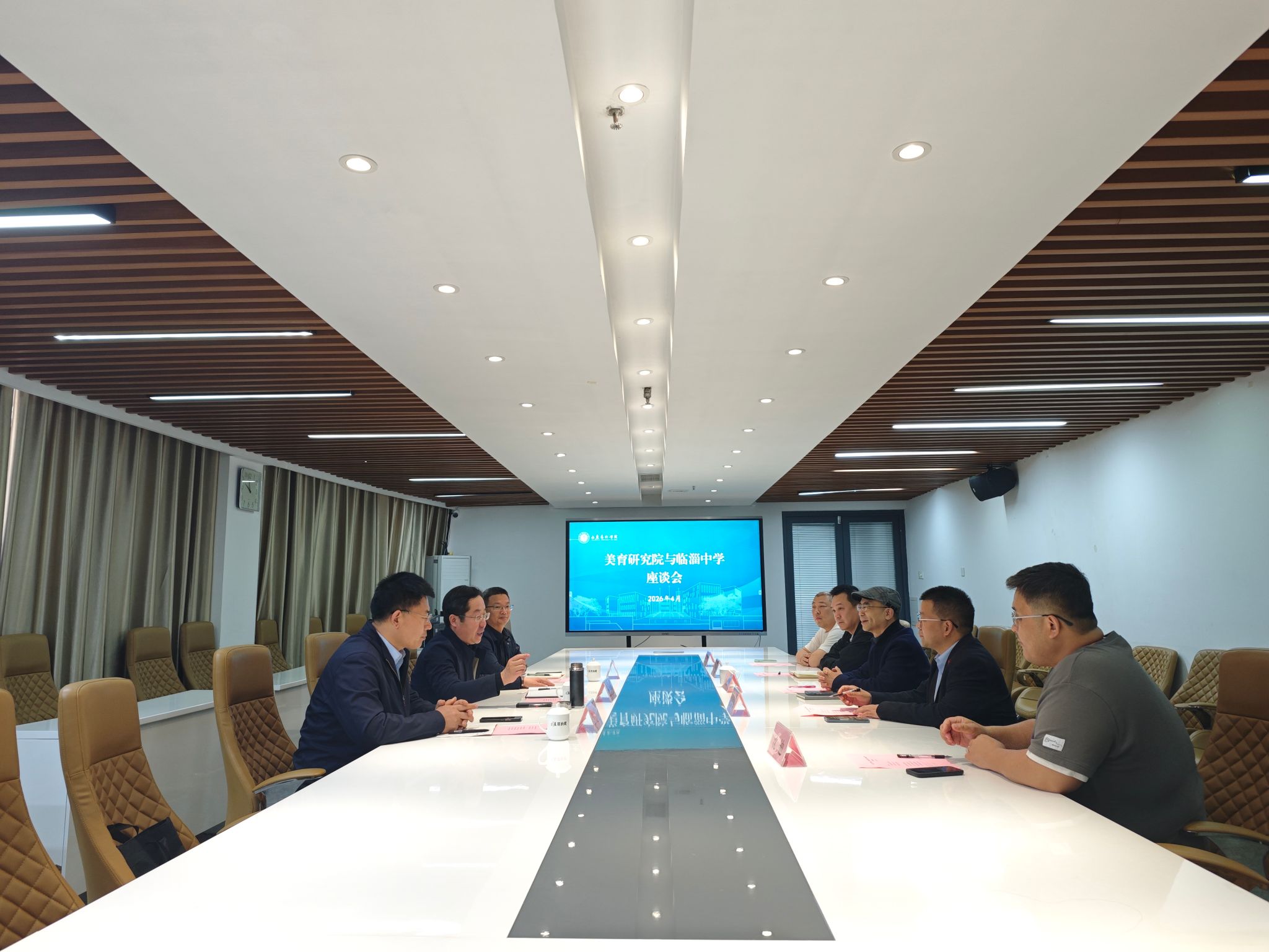 近日,临淄中学党委书记段玉强、校长吕少学、副校长吕建亮一行到我校美育研究院开展专题座谈交流。美育研究院、合作发展中心相关负责人及工作人员参加座谈。
