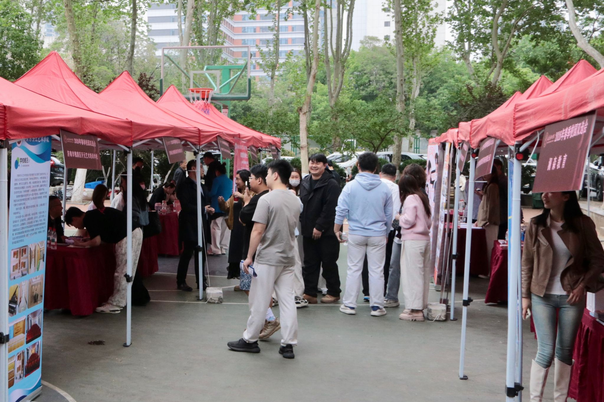 上午,2026年春季音乐专业专场招聘会在篮球场举办,省内外30多家优质用人单位参加,涵盖艺术演出、教育培训、文化传播等领域。用人单位现场设置招聘展位,并与毕业生面对面沟通交流,现场气氛热烈有序。