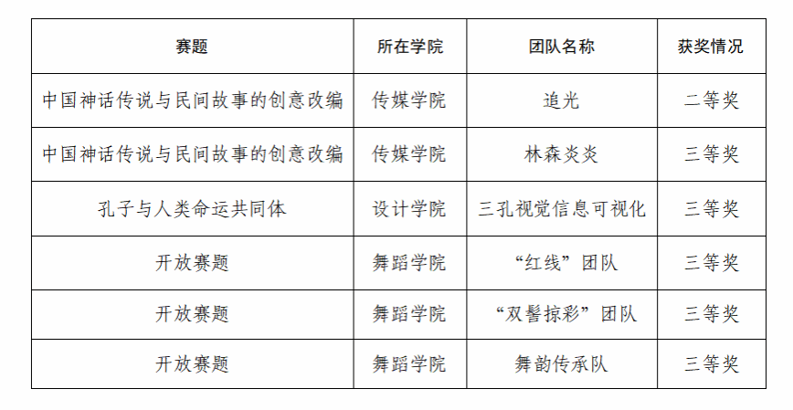 近日,第一届中国研究生“文化中国”两创大赛在山东大学落下帷幕,我校研究生在该大赛中荣获多个奖项:《山东鼓子秧歌(伞)——扛伞风格训练》课程获舞蹈赛道专项赛二等奖,六个研究生团队获得二等奖一项、三等奖五项,学校荣获优秀组织奖。在比赛中,我校研究生团队将理论知识与实践相结合,将创新思维与文化传承相融合,展现了突出的创新能力和深厚的文化底蕴。