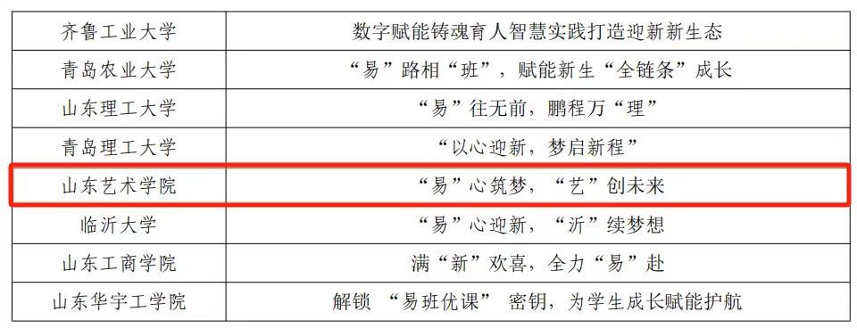 3月19日,山东高校易班发展中心公布了2024 年度山东易班共建高校优秀工作案例评选结果。经过高校申报、学校互评、专家评审、省教育厅审核,我校学生工作部报送的《“易“心筑梦,“艺”创未来》获评“优秀易班迎新案例”,戏剧学院辅导员郝荣华获评“优秀易班辅导员”。
