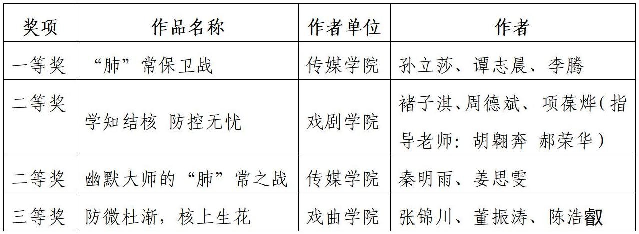 据悉,本次活动主题为“全面行动 全力投入 全民参与 终结结核”。共收到500余条科普短视频作品,经过区县初审,最终有450余条通过审核,其中我校作品16项。经专家打分,最终评选出一等奖8个、二等奖12个、三等奖22个,优秀奖40个。