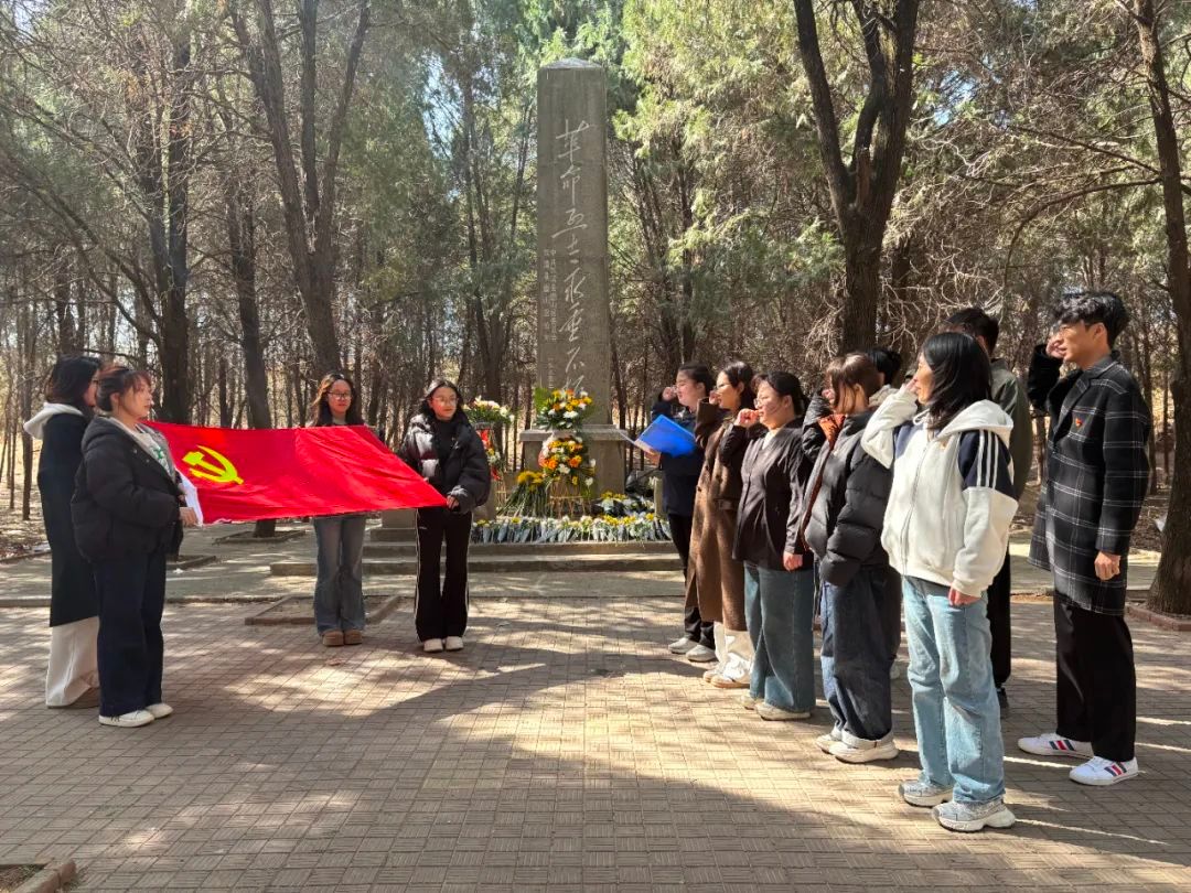 设计学院、艺术管理学院组织党员、团员和入党积极分子赴“一门三烈士”纪念碑广场开展“追寻先烈足迹 赓续红色血脉”主题党日活动。在烈士纪念碑前,全体成员列队肃立,默哀致敬。党员面向党旗重温入党誓词,团员重温入团誓词,以铮铮誓言表达传承红色基因、勇担时代使命的坚定信念。